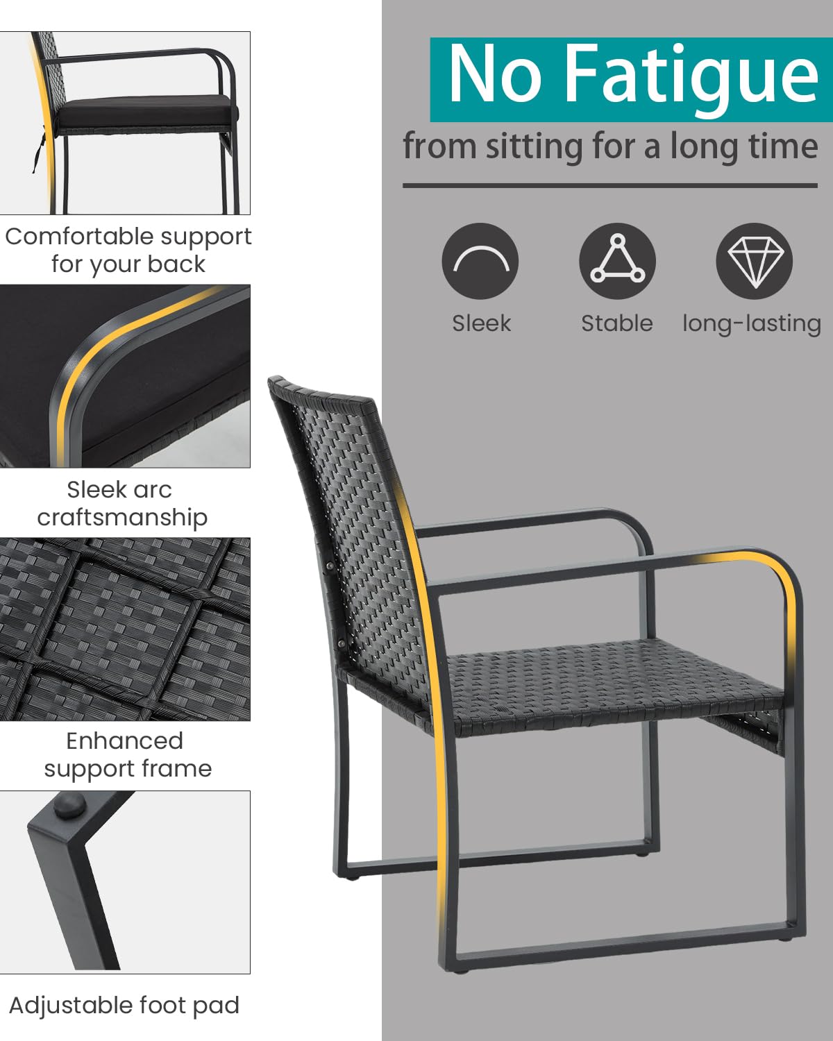 - Sturdy and Durable Construction: Our outdoor patio furniture set crafted with a high-quality, powder-coated steel frame and handwoven PE rattan, this set is designed for longevity and durability. It is rust-proof, weather-resistant, and suitable for outdoor use. Each chair supports up to 250 lbs, ensuring a strong and stable seating experience