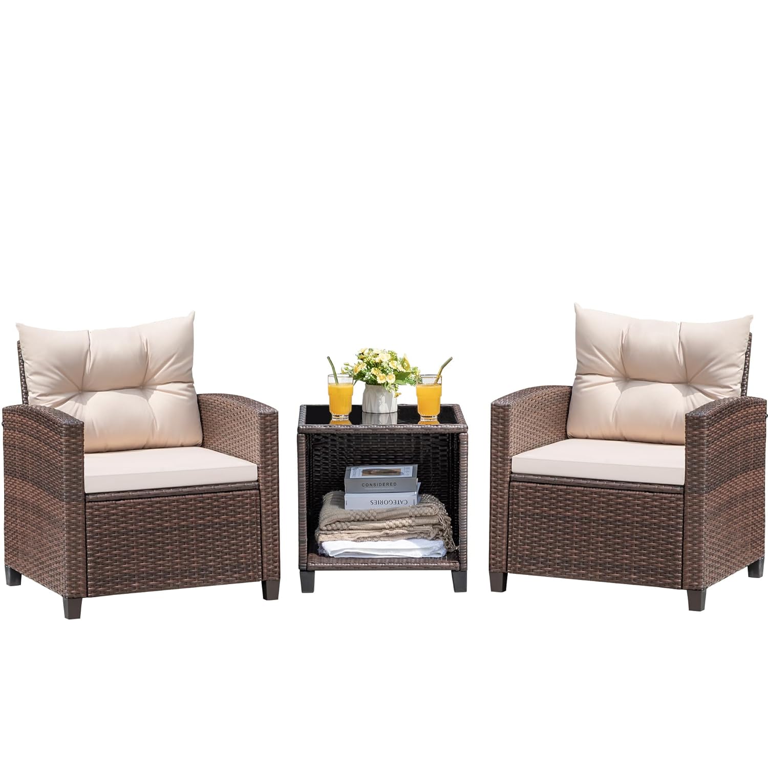 I ordered two sets since my husband isnโt a fan of loveseats. The storage space under the table is impressively roomyโit easily holds a variety of items, and I plan to use stackable wicker boxes with lids to keep everything tidy and hidden.