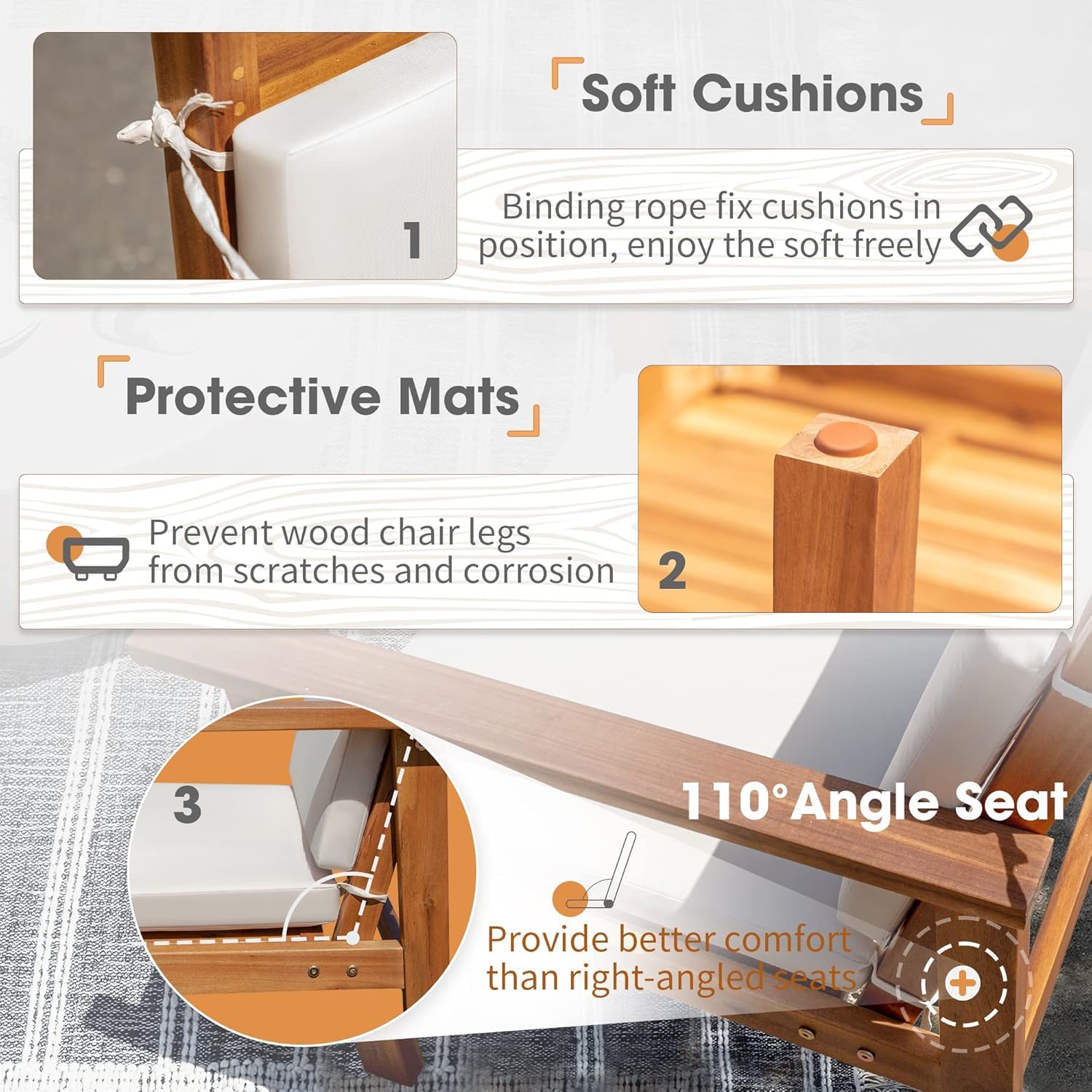 - Designed for Comfort: The seat and back of this patio set are designed with a 110°angle, which provides better support and comfort to the body than traditional right angle seat. Come with banding rope, cushions can be fixed in the back and will not move around.