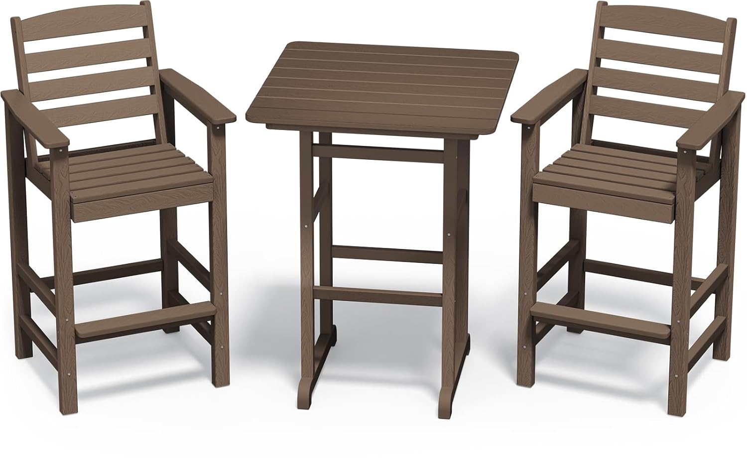 About SERWALL HDPE Outdoor Patio Bar Set, Tall Adirondack Bar Chair and Table Set (Coffee, 3 pcs)