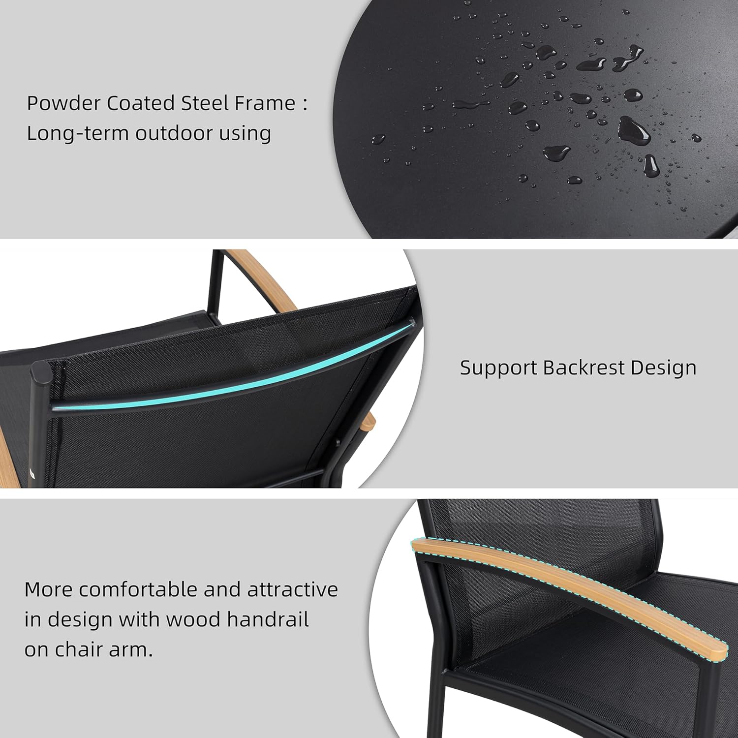 About Shintenchi 3 Pieces Patio Bistro Sets, Outdoor Textilene Fabric Conversation Bistro Set, Textilene Fabric Front Porch Chairs Small Patio Furniture Set with Table for…