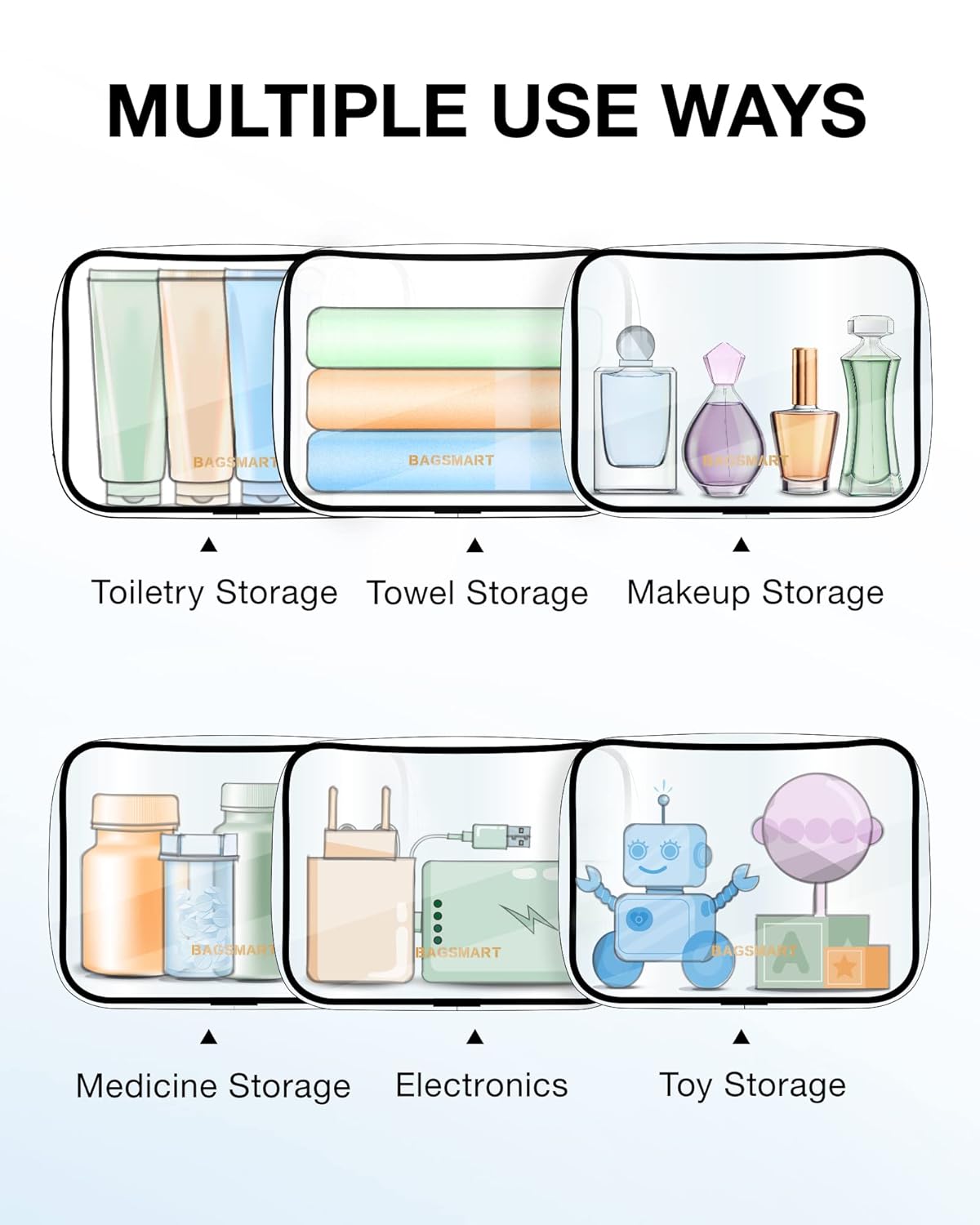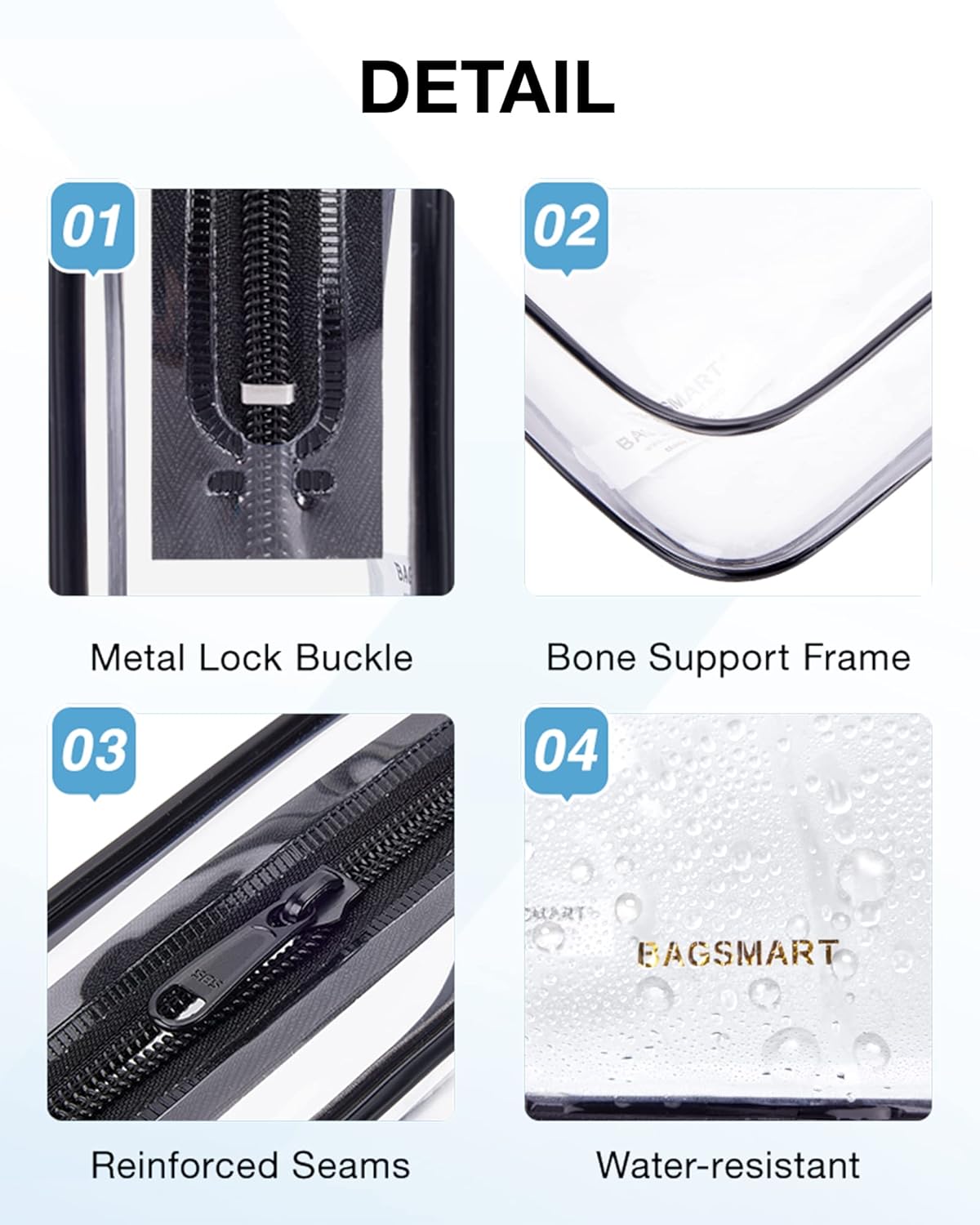 Editor’s Choice โ discover the BAGSMART Clear Toiletry Bag, 2 Pack TSA Approved Travel Toiletry Bag Carry on Travel Accessories Bag Airport Airline Quart Size Bags Water Repellent Makeup Cosmetic Bag for… by BAGSMART, built for performance and designed for life in the United States.