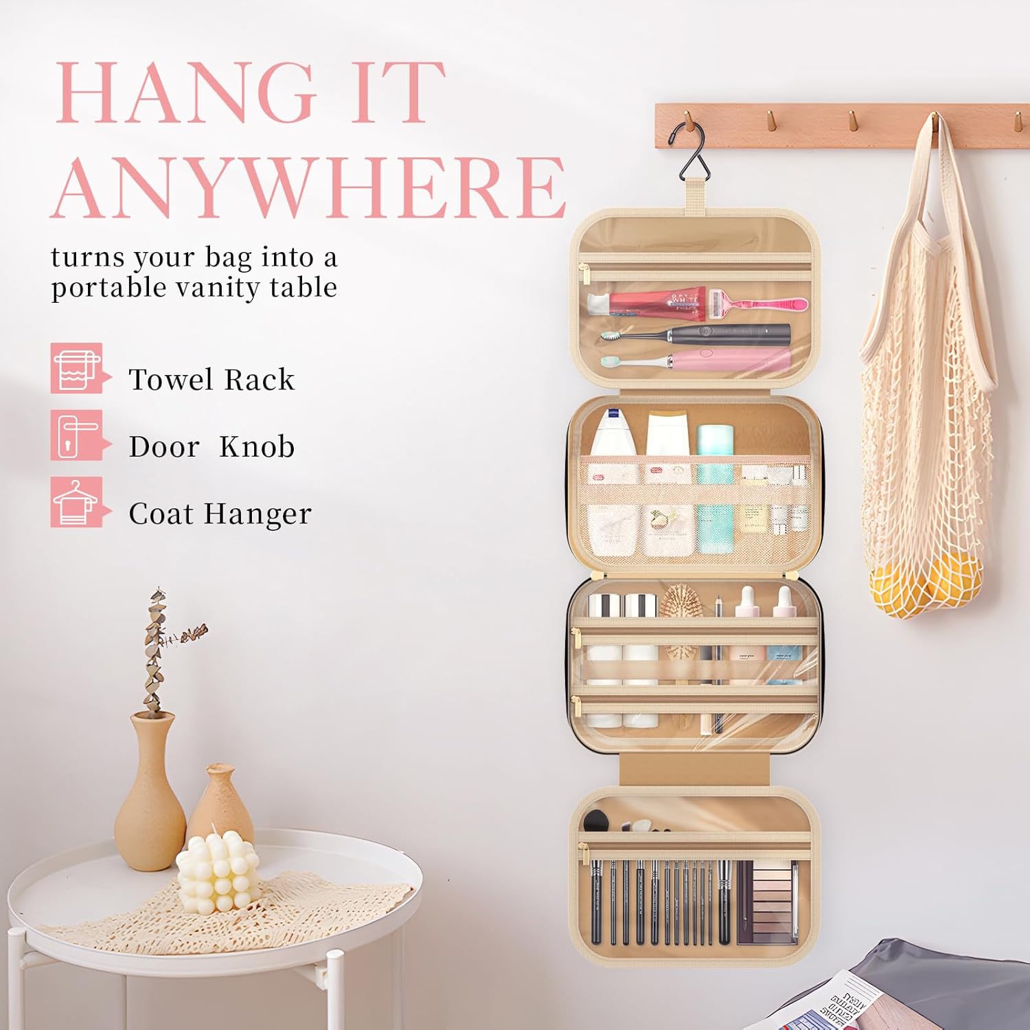 - WATERPROOF & MULTIPURPOSE: Perfect for various scenarios, this hanging toiletry bag for women includes leakproof and waterproof PVC pockets suitable for bathroom use. Its compact, sturdy, portable, and lightweight nature makes it an ideal companion for business trips, travel, gym sessions, camping, and home use. The added convenience of a grab handle ensures easy portability, making it a travel must-have travel.