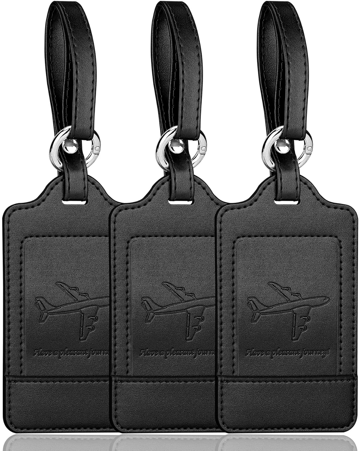 Photos: Teskyer Luggage Tags, 3 Pack PU Leather Luggage Tags for Suitcases, Privacy Protection Bag Tags Travel Essentials, Black by Teskyer