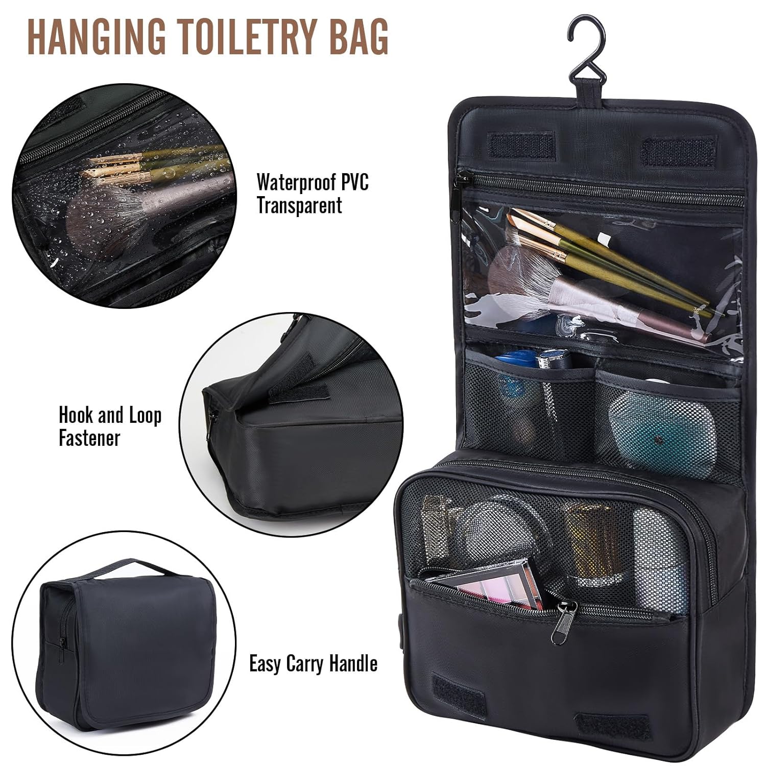 - Multi-purpose Travel Essential: Includes a hanging toiletry bag with 5 compartments for organizing toiletries and cosmetics, featuring a convenient hanging design. The versatile laundry bag holds up to 9 garments and transforms into a backpack, perfect for all your travels.