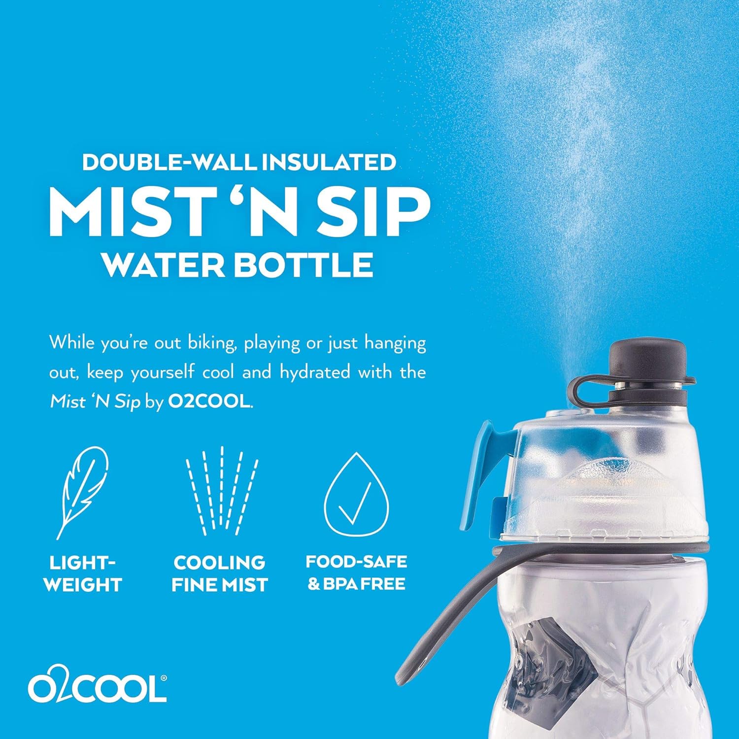 - Mist ‘N Sip Function: Our water bottles have a misting function to cool you down while you drink.