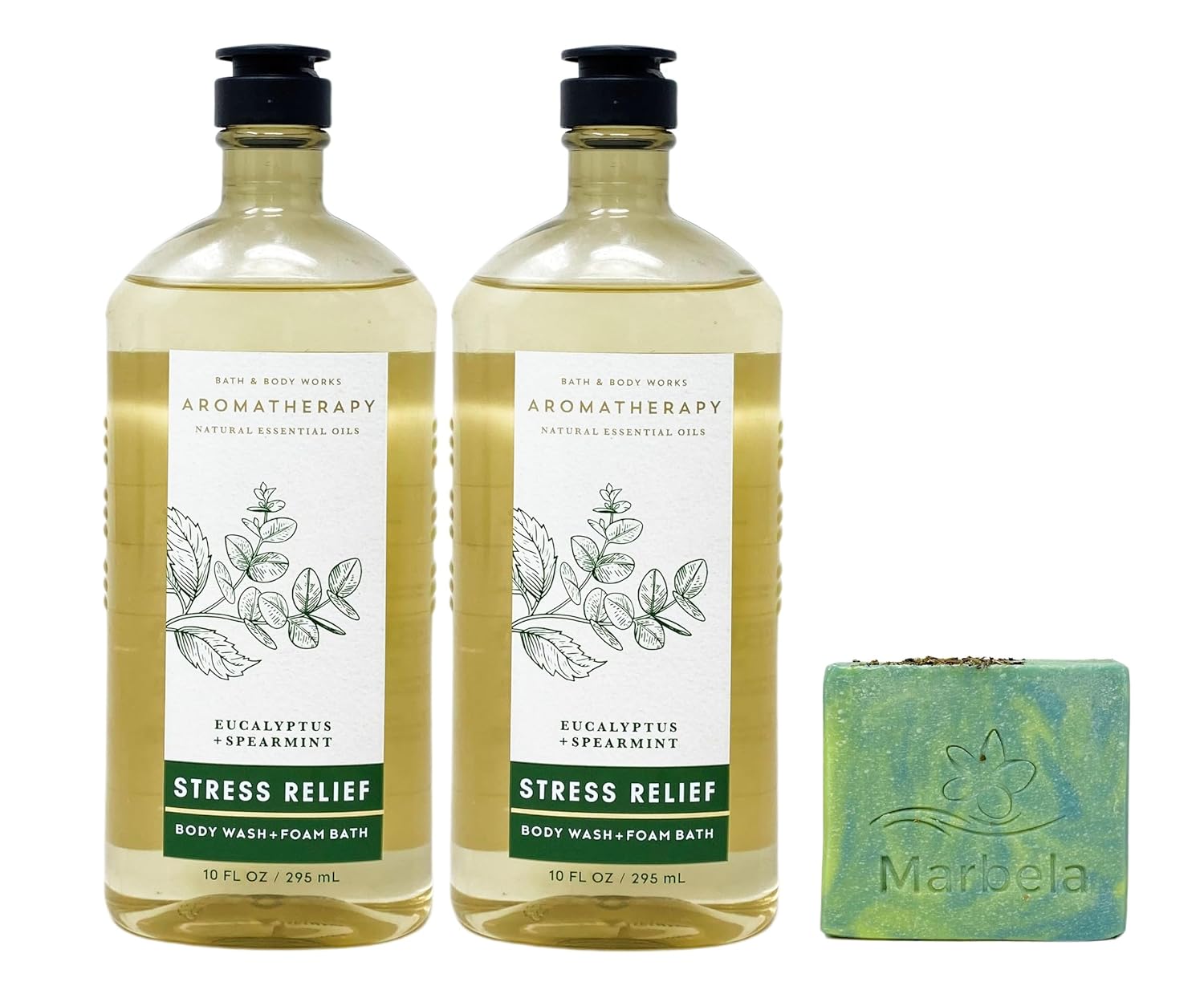 - Bath & Body Works Aromatherapy Eucalyptus + Spearmint Stress Relief Body Wash with a Marbela Fresh Forest Bar Soap. (Soap May Vary).