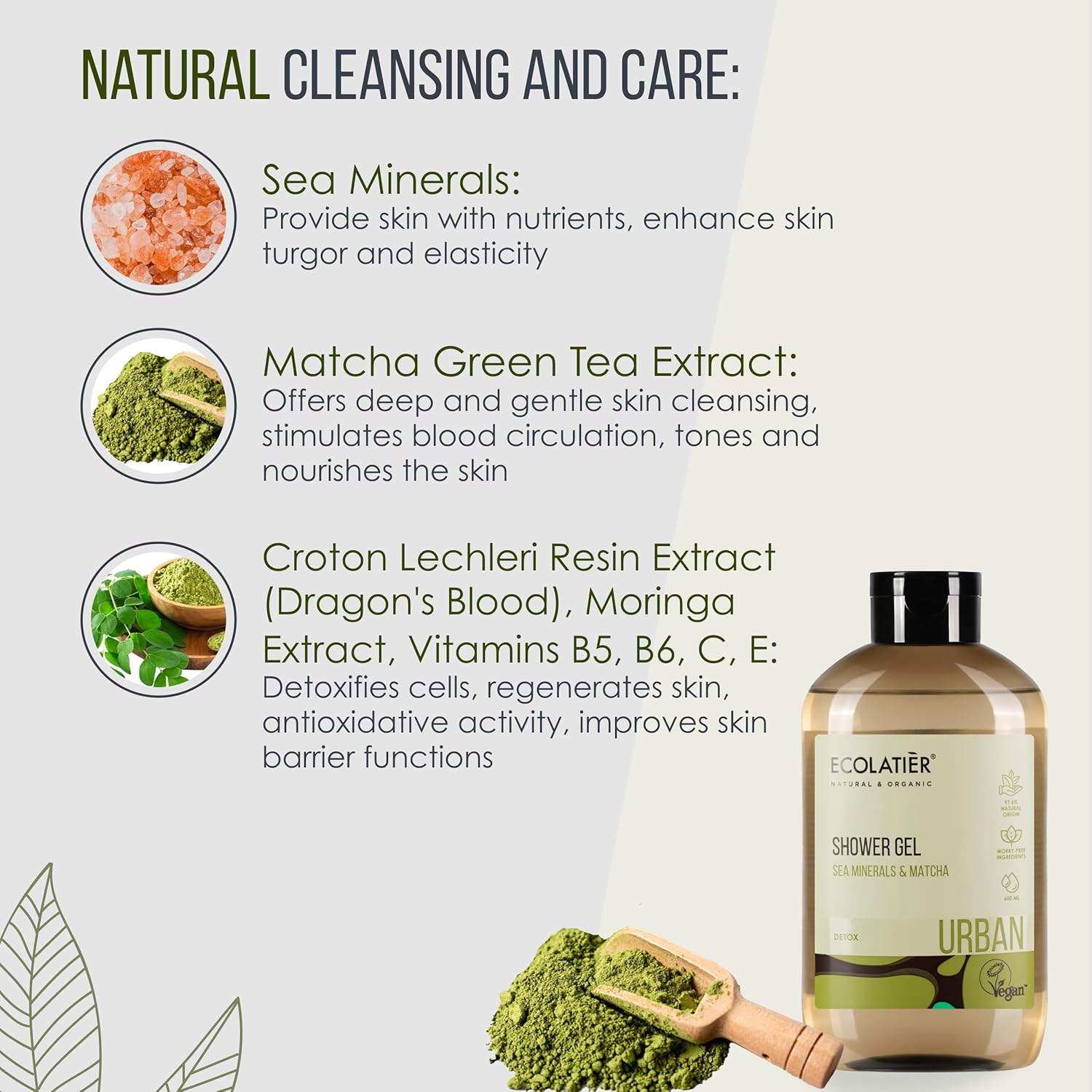 Sea Minerals & Matcha Body Wash – Natural Body Wash for Women & Men, 97.5% Natural Ingredients, Detoxifying & Hydrating Cleanser for Sensitive Skin, Gentle & Nourishing Care,… by ECOLATIÈR
