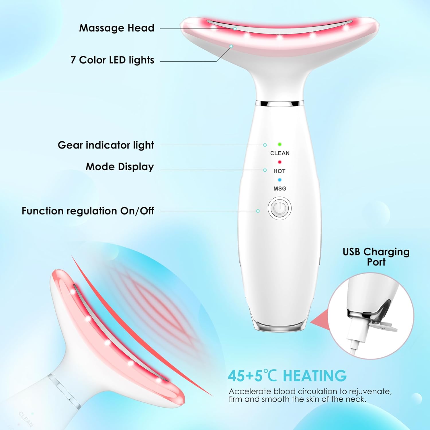 - Easy to Use – Specifically designed for women, our Facial Massager is incredibly easy to use. Simply apply your preferred skincare products to your neck and face, then use the massage head to gently lift and sculpt the neck area from bottom to top. Experience firmer and smoother skin on your face, neck, and dรฉcolletage. With regular use, this technique can help minimize fine lines, define facial contours, eliminate the appearance of double chin, and improve overall skin elasticity.