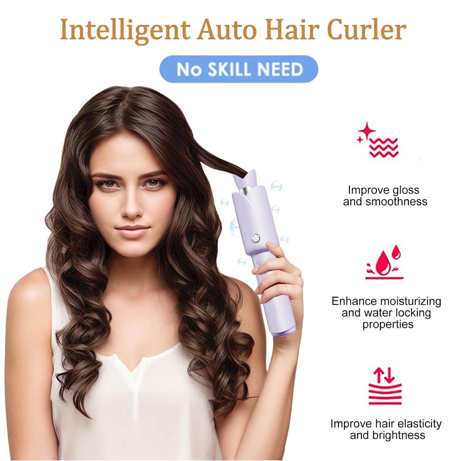 - ใNegative Ions Eliminate FrizzใThe automatic hair curler with a ceramic coating barrel and generates millions of negative ions during use, effectively eliminating static electricity and maintains the hair’s silky smoothness and frizz-free, creating shiny, gorgeous waves and long-lasting hairstyles.