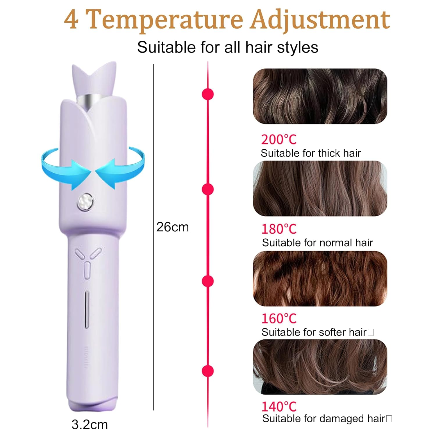 About Automatic Curling Iron, Auto Wand Curler with 4-Speed Adjustable Temperature, Fast Heating, Automatic Shut-Off, Anti-Scald, Portable Rechargeable Curling Wand for Hair Styling…