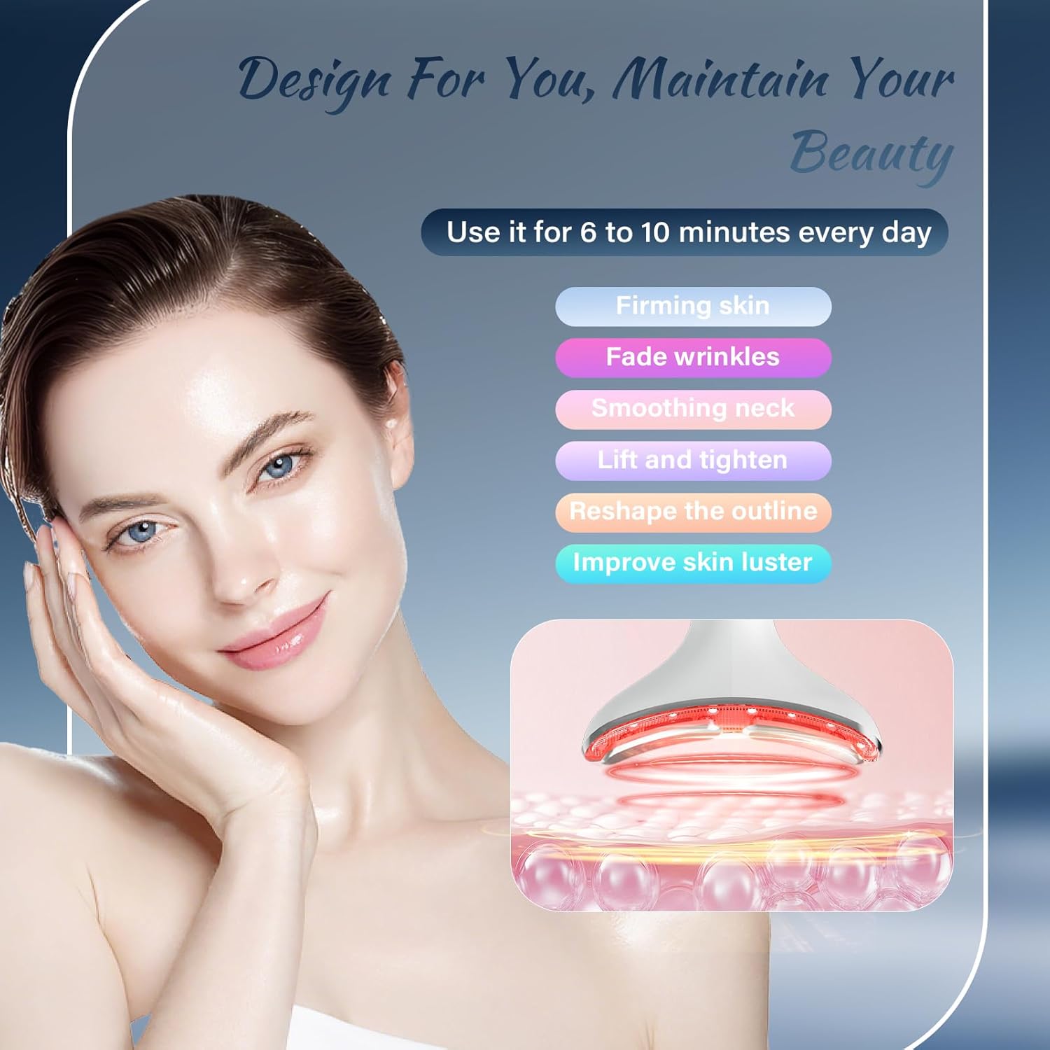 This facial and neck massager is wonderful. From the first week, I noticed my skin was smoother, brighter, and with better circulation. The heat function is incredibly relaxing, and the LED lights really help improve skin texture. I love using it before bed; it gives a spa-like feeling at home.