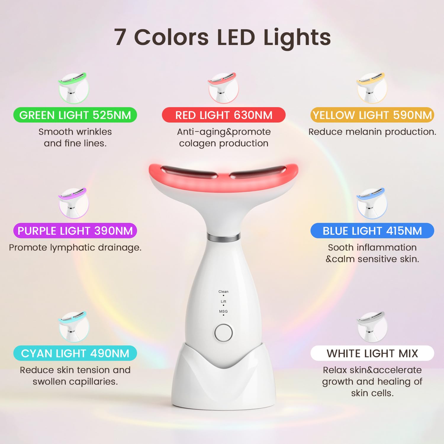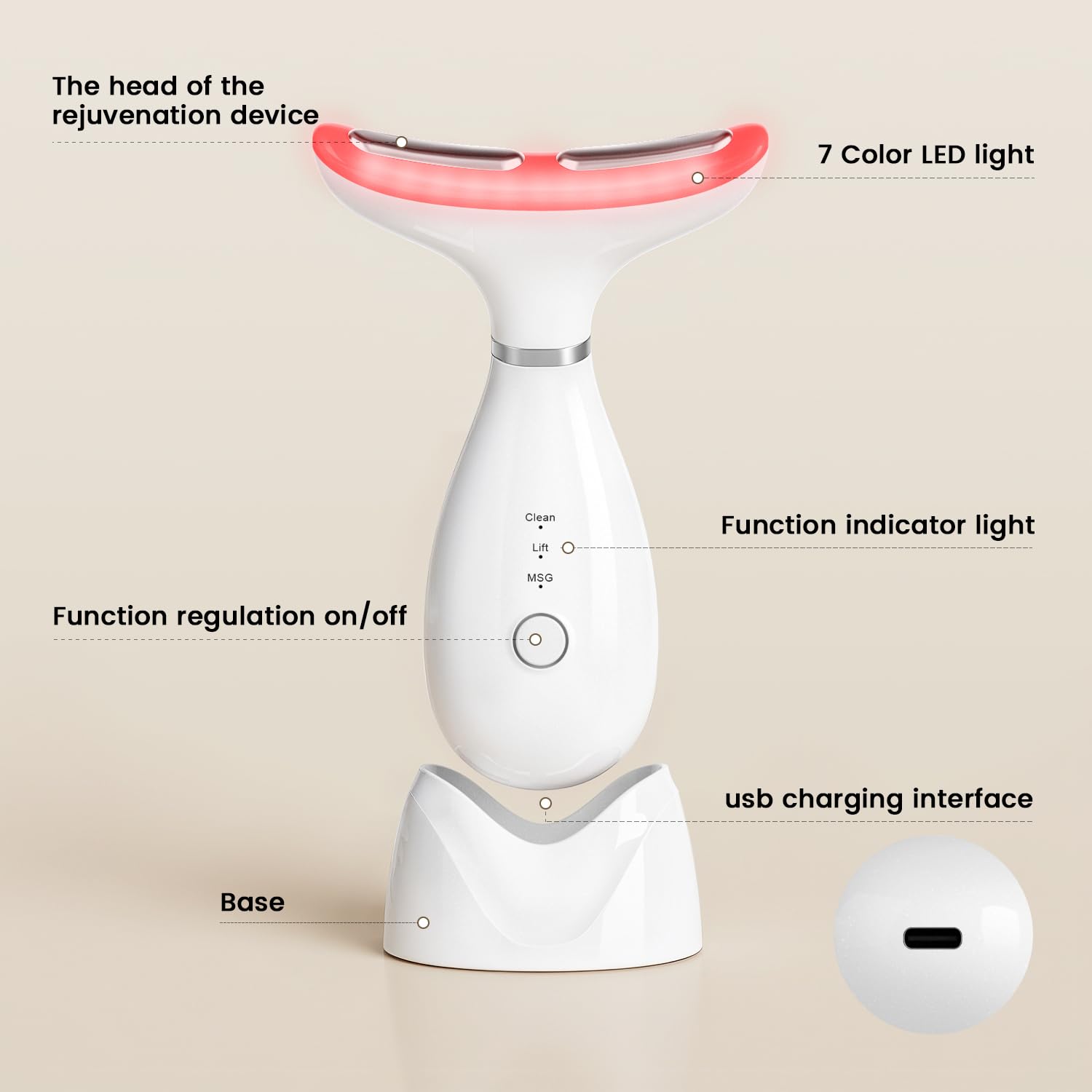 About Facial and Neck Massager,7 Color LED Light Therapy for Face,Face Lift Device,Beauty Face Massager Tools for Skin Care (White)