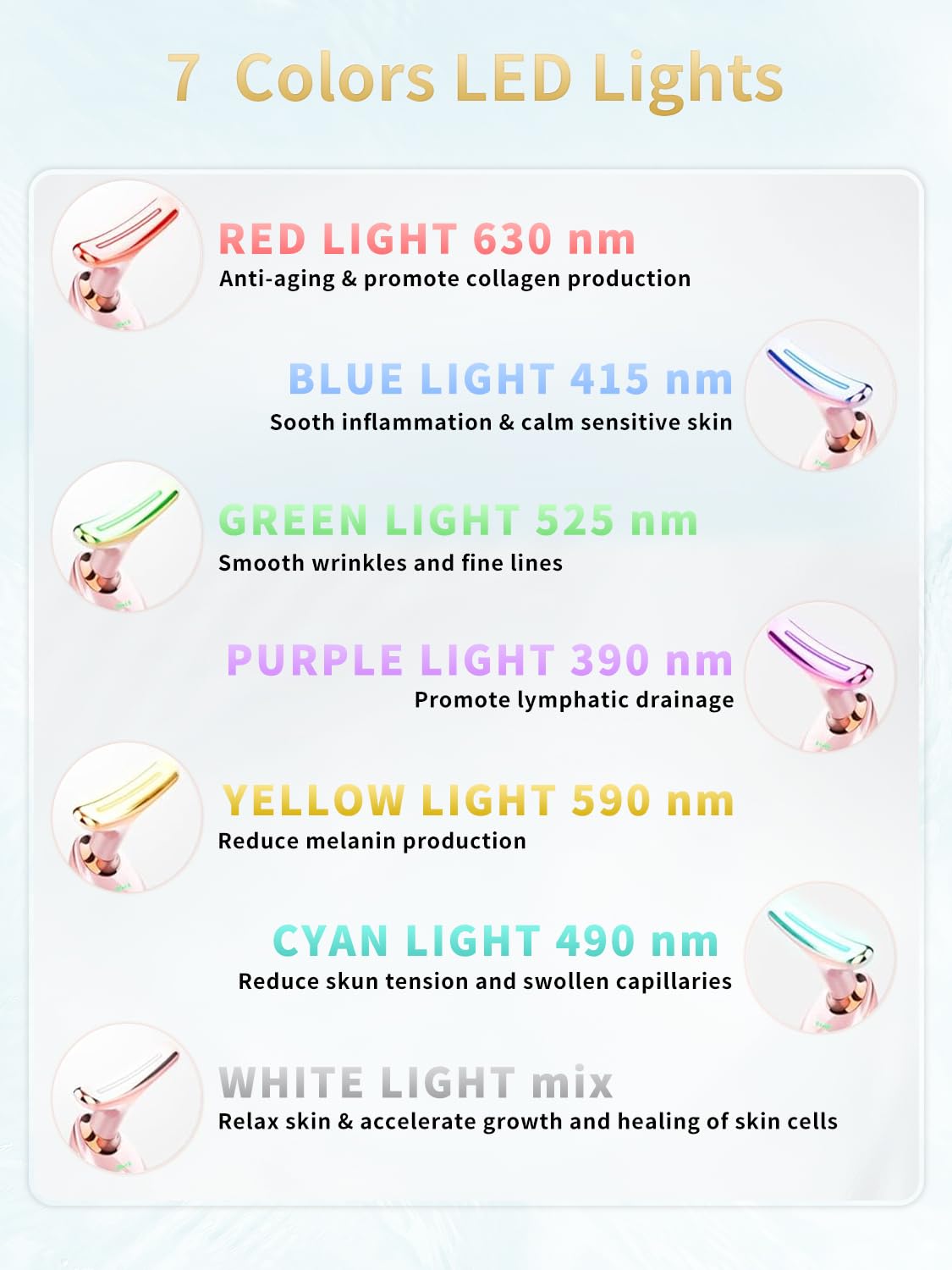 Specification: Facial Beauty Device, Multifunctional Facial Skin Care Tools with Vibration, Red and Blue LED Light, 7 Color Led Face and Neck Beauty Device for Home Use, Improve Skin by Yolopim