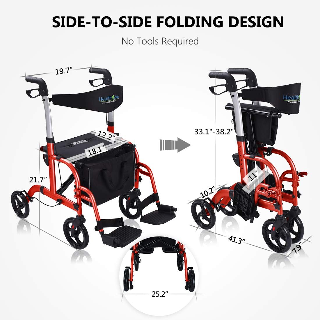 Editor’s Choice โ discover the Health Line Massage Products 2 in 1 Rollator-Transport Chair w/Paded Seatrest, Reversible Backrest and Detachable Footrests, Cherry Red by HEALTH LINE MASSAGE PRODUCTS, built for performance and designed for life in the United States.