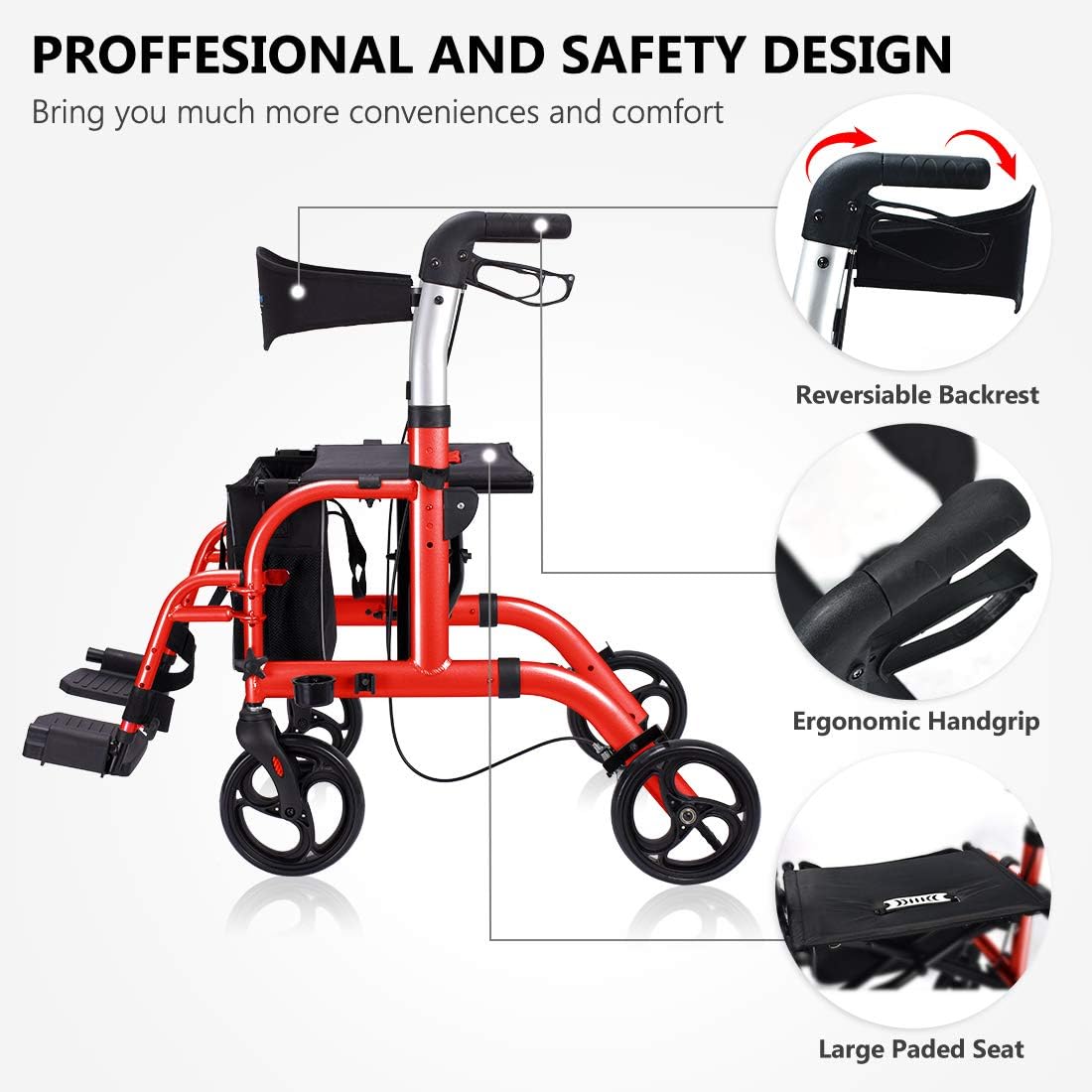 - Hybird Rollator Walker for Seniors: 2 in 1 Mobility Aid, Can Be Easily Converted From Rollator into Easy Wheelchair, Only By Simply Flipping the Backrest Over and Attaching the Footrests To The Front.