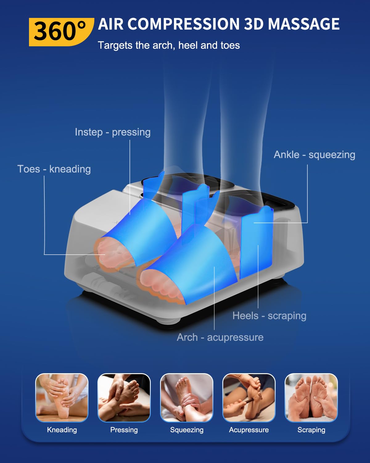 About MOUNTRAX Foot Massager Machine with Heat, Foot Massager for Plantar Fasciitis, Neuropathy Pain, Shiatsu Foot Massager with Remote, Fits Feet Up to Men Size 12 (White)