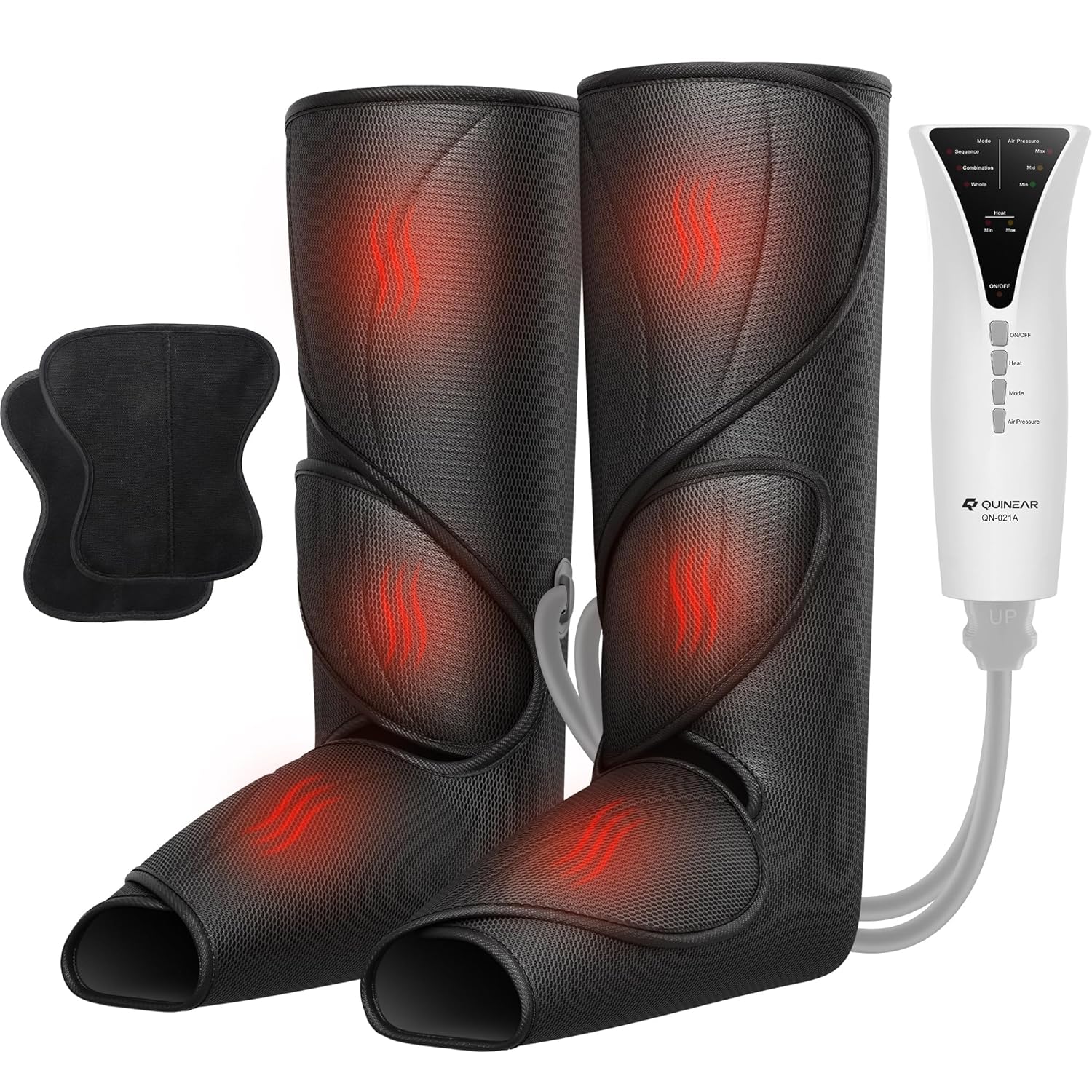 QUINEAR Leg Massager with Heat and Air Compression,Foot and Calf Massager for Circulation and Pain,Compression Boots with 3modes and 3 Intensities,Gift for Dad Mom by QUINEAR