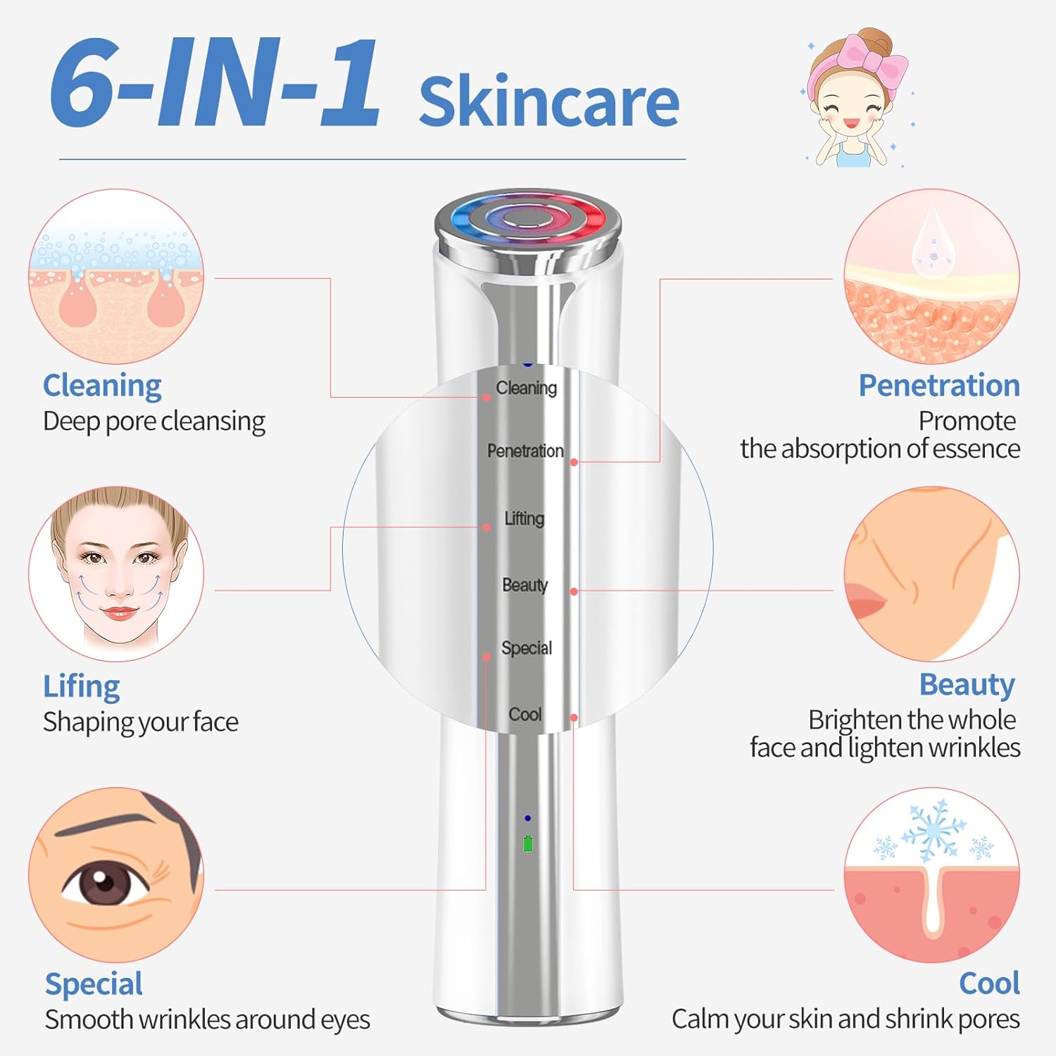 I am very happy with this facial device! It is lightweight, elegant, and easy to use. The different modes like Cleaning, Penetration, Lifting, Beauty, Special, and Cool make it a very complete tool for skin care. I especially like the lifting and cooling functions because they leave my skin feeling fresh and tighter after every use.