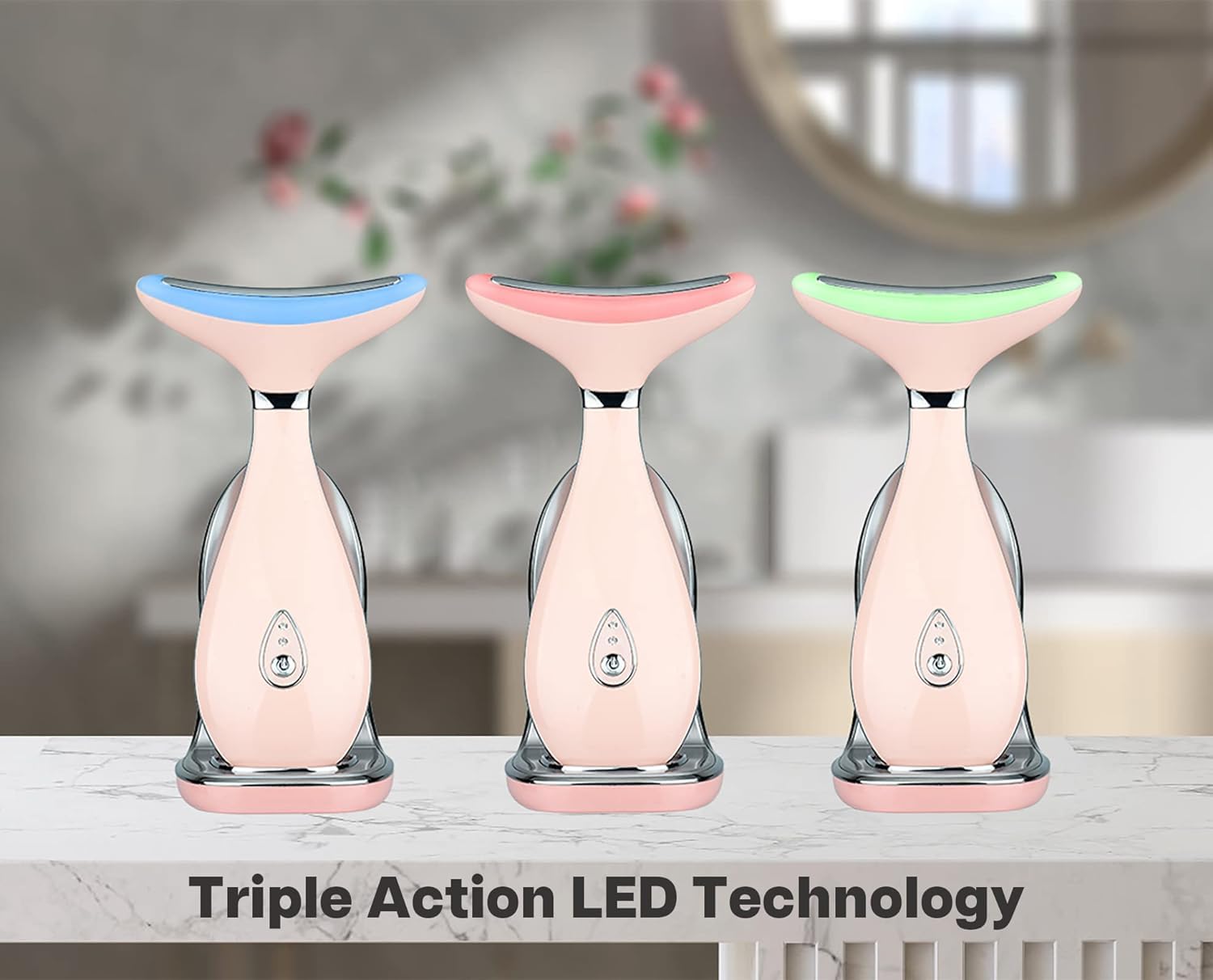 The thermal heat and gentle vibrations are so soothing, and the triple action LED light therapy gives a true spa-like experience. My skin feels tighter, looks more radiant, and my jawline appears more defined. I use it on my neck and face, especially around areas that need a little lift.
