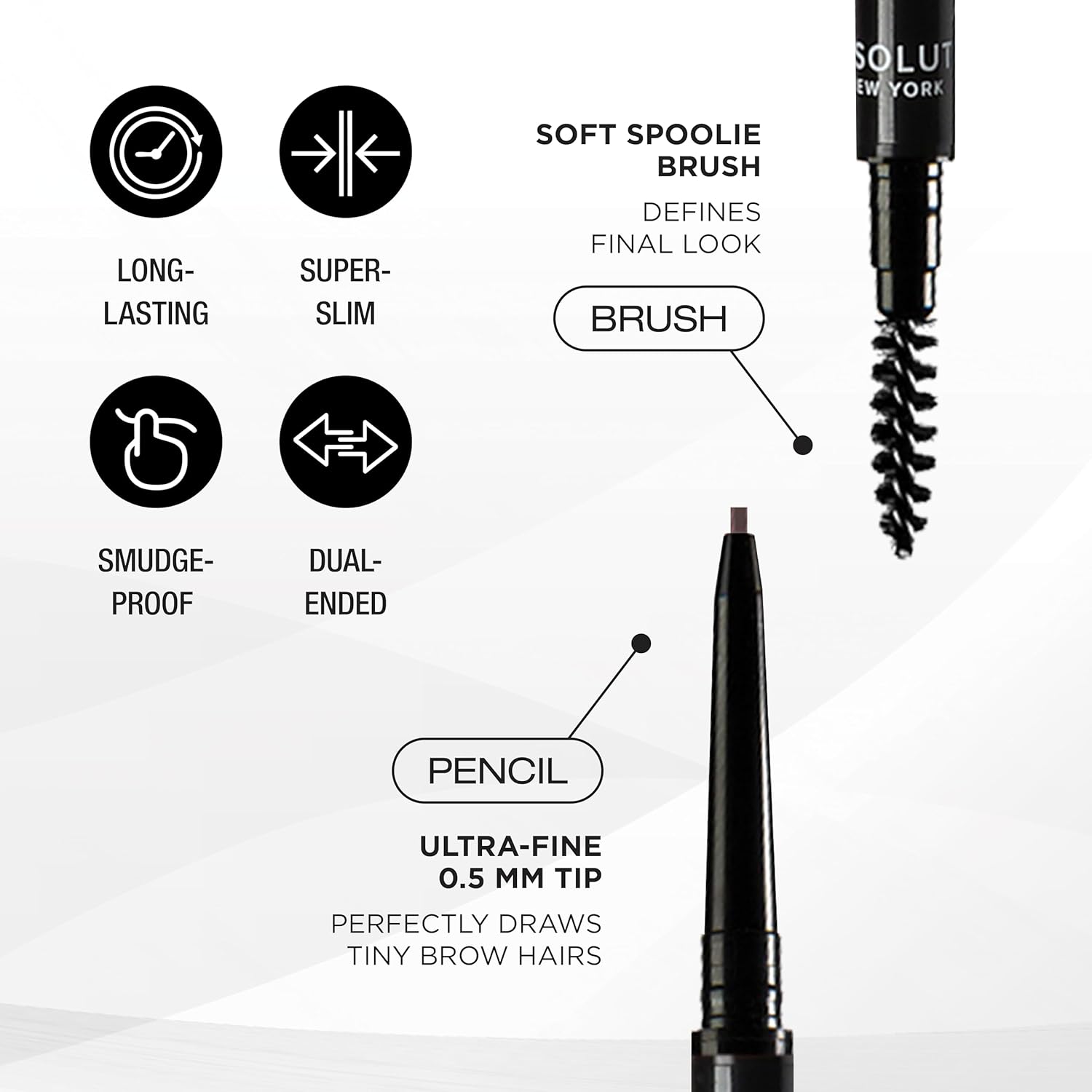 About Absolute New York Super Slim Brow Pencil, Fine Point, Dual Ended, Fade Resistant and Long Lasting (Smoke)