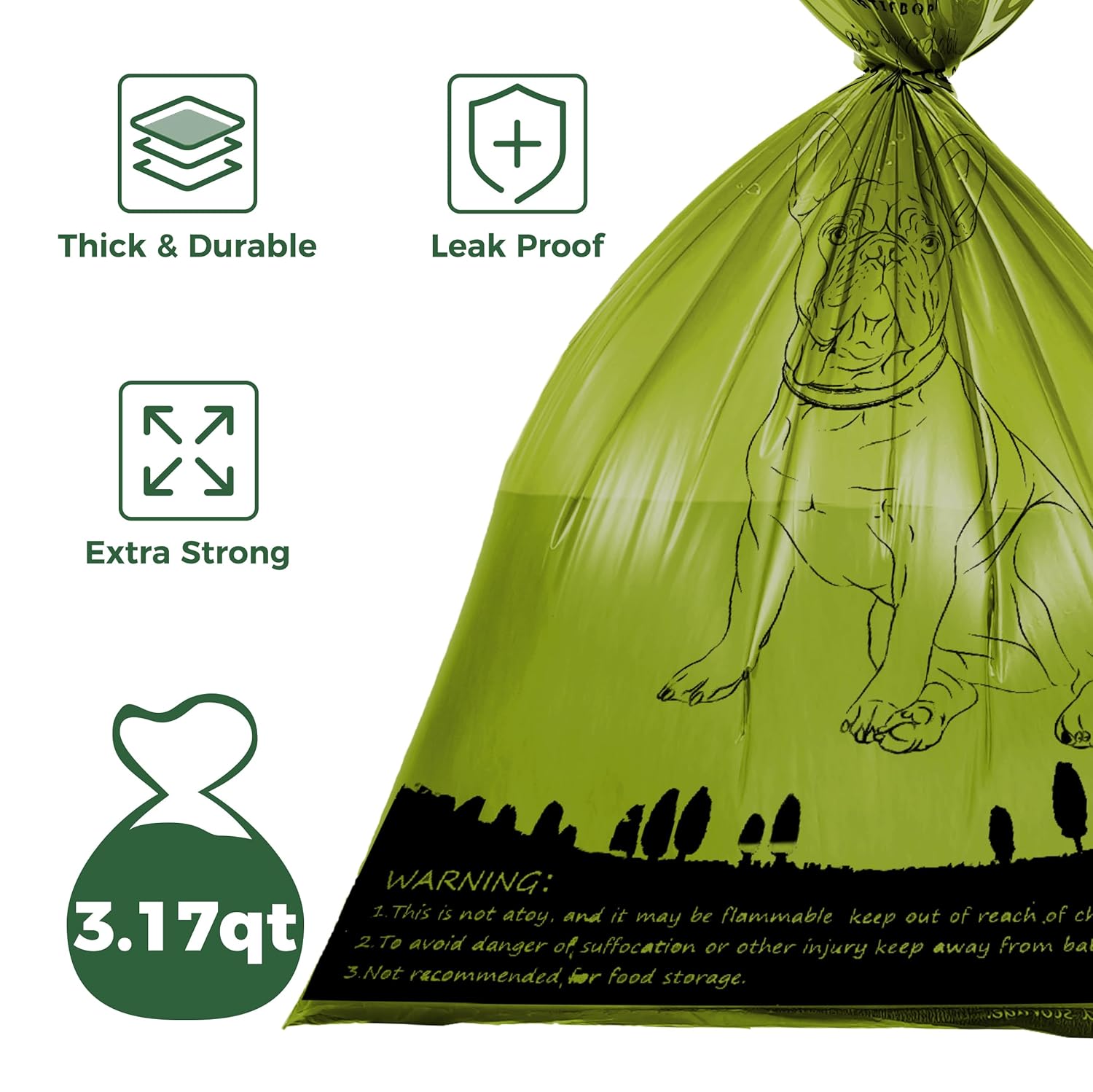 - THICK AND DURABLE:Our compostable poop bags for dogs covers your embarrassment and is suitable for puppy to large dogs.