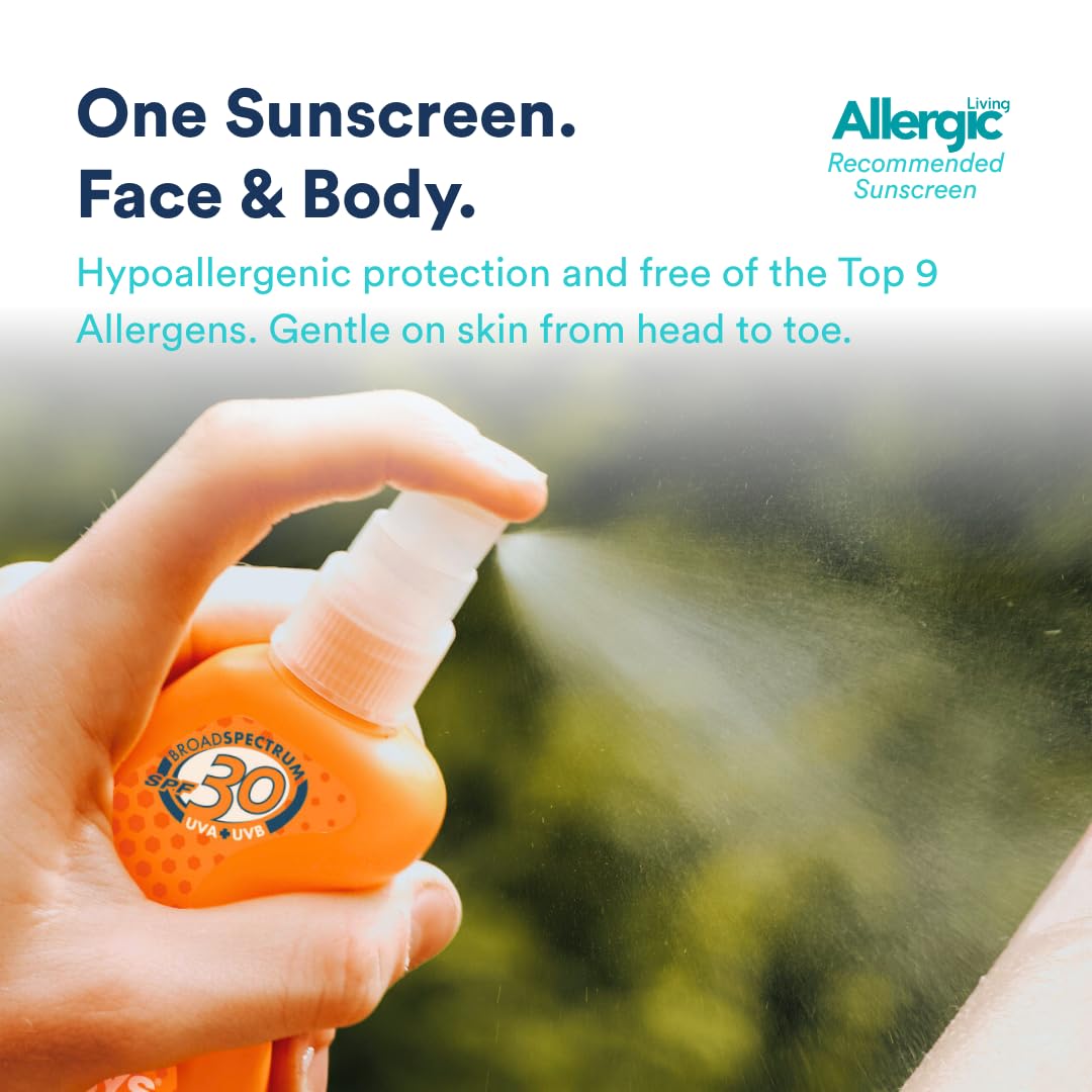 - KIDS FRAGRANCE FREE SPF 30: 100% clear, hypoallergenic, Broad Spectrum UVA/UVB protection, with a non-greasy feel. Simple application to kiss the dreaded “sunscreen routine” goodbye—kids love the feel! Size: Single 120 ml bottle.