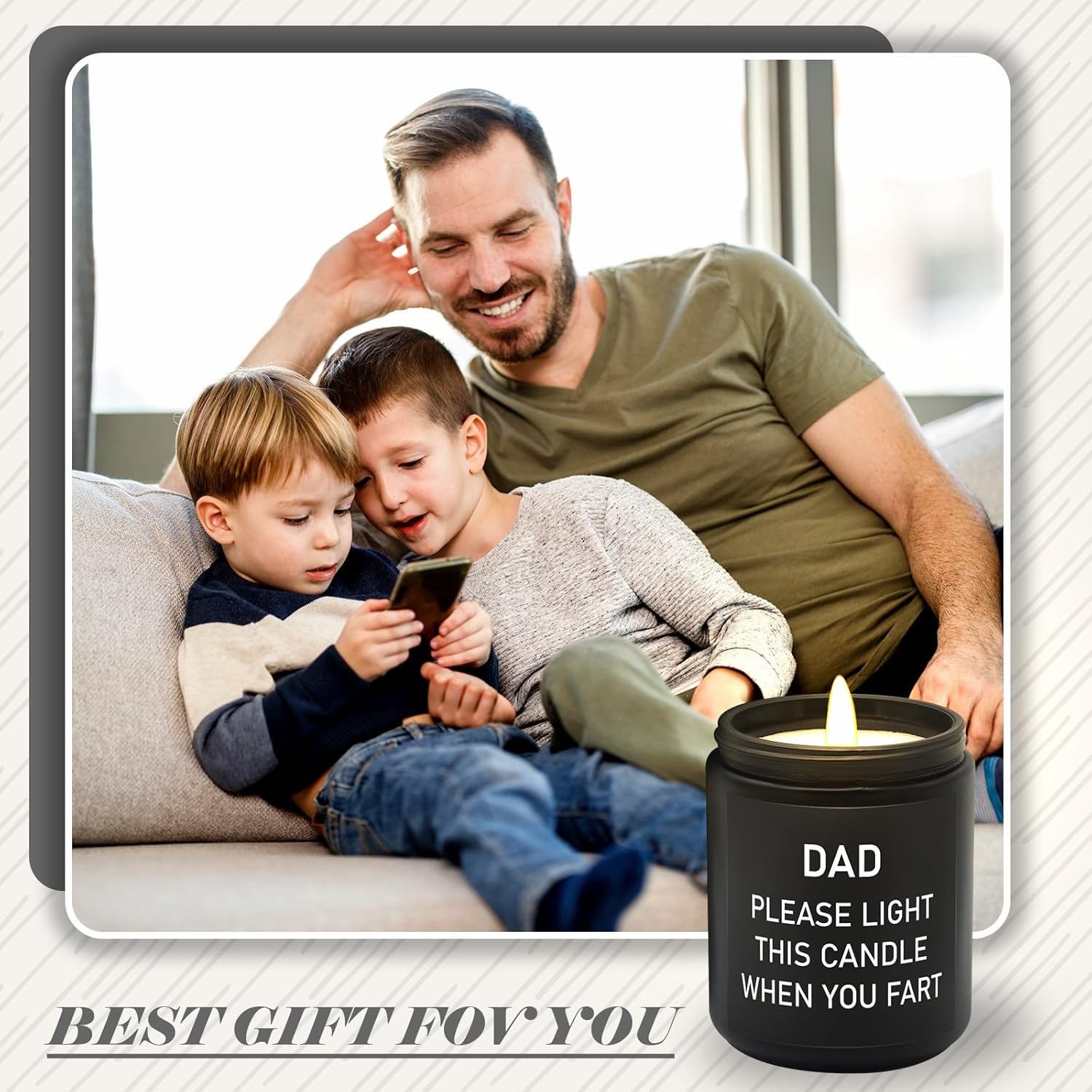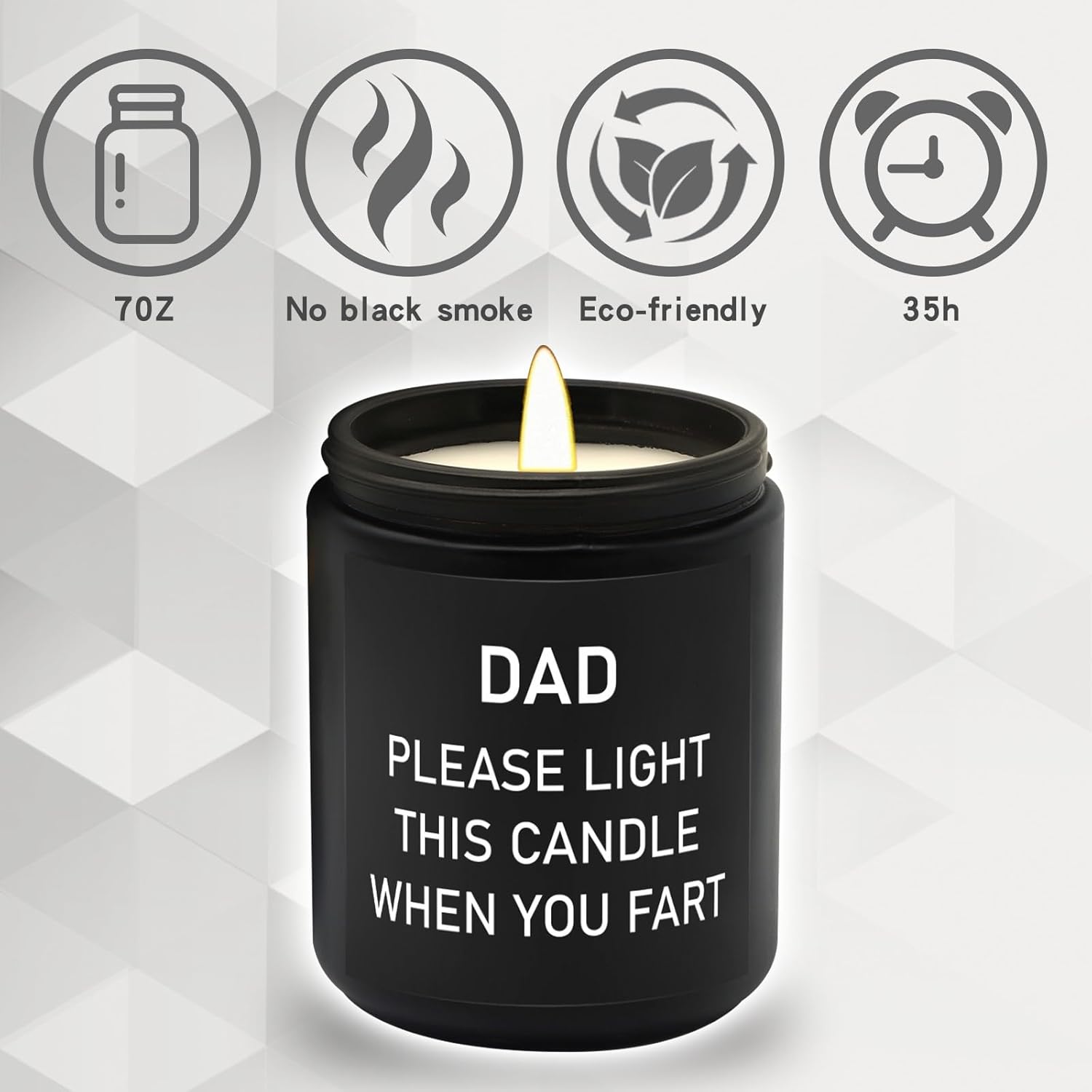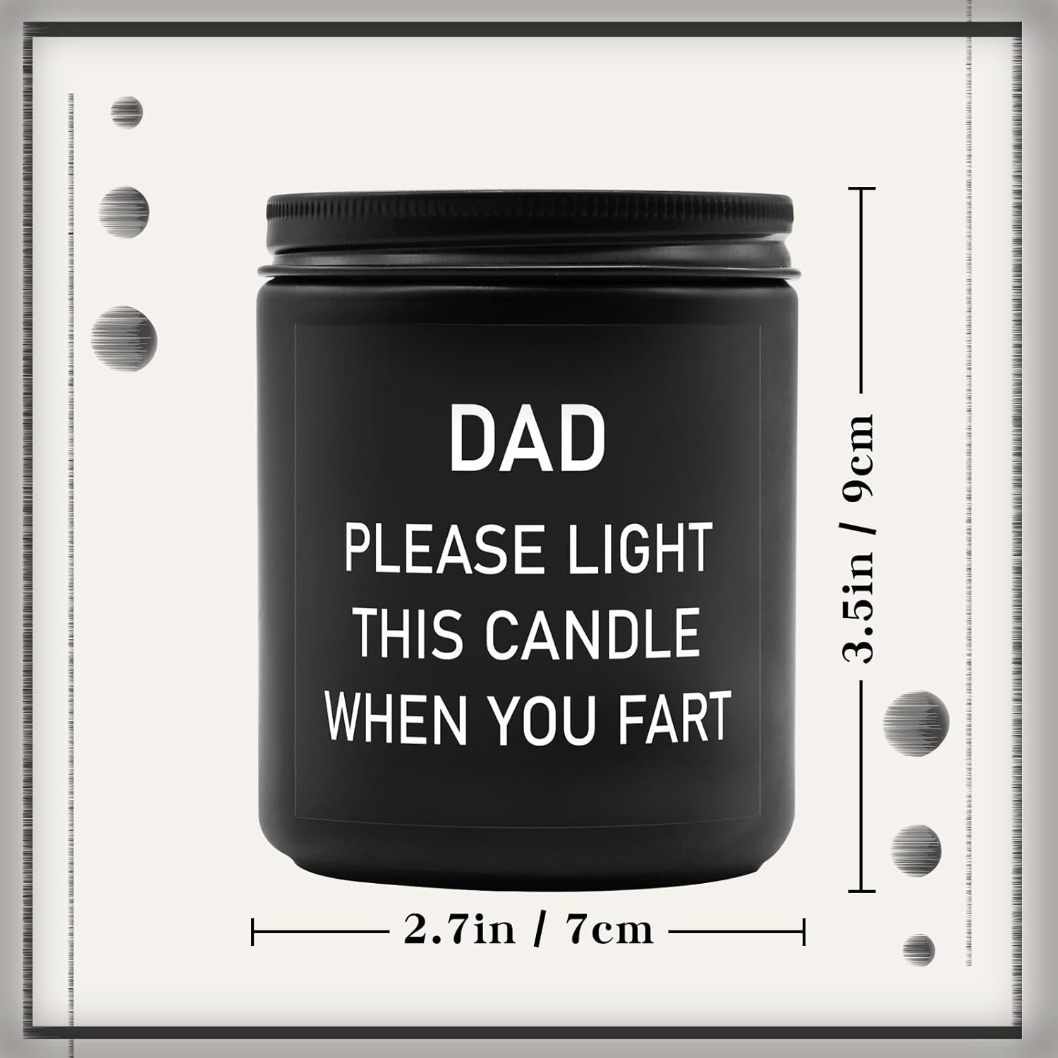 - 🎁 Funny Gift for Dad – Make Him Laugh Instantly 🎁-This scented candle features a hilarious message: “Dad, please light this candle when you fart.” It’s the perfect gag gift to make dad smile, laugh, and think of you every time he smells that smoky vanilla scent.