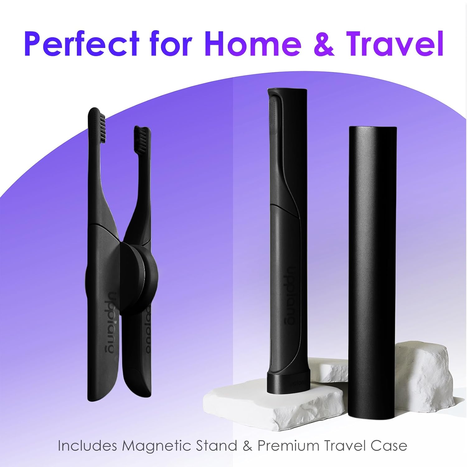 - 2️⃣ Perfect for Home and Travel Use At home, the magnetic wall-mount stand keeps your toothbrush elevated to avoid moisture buildup. For travel, the included premium aluminum case keeps your toothbrush clean and secure. Compact, hygienic, and easy to carry.