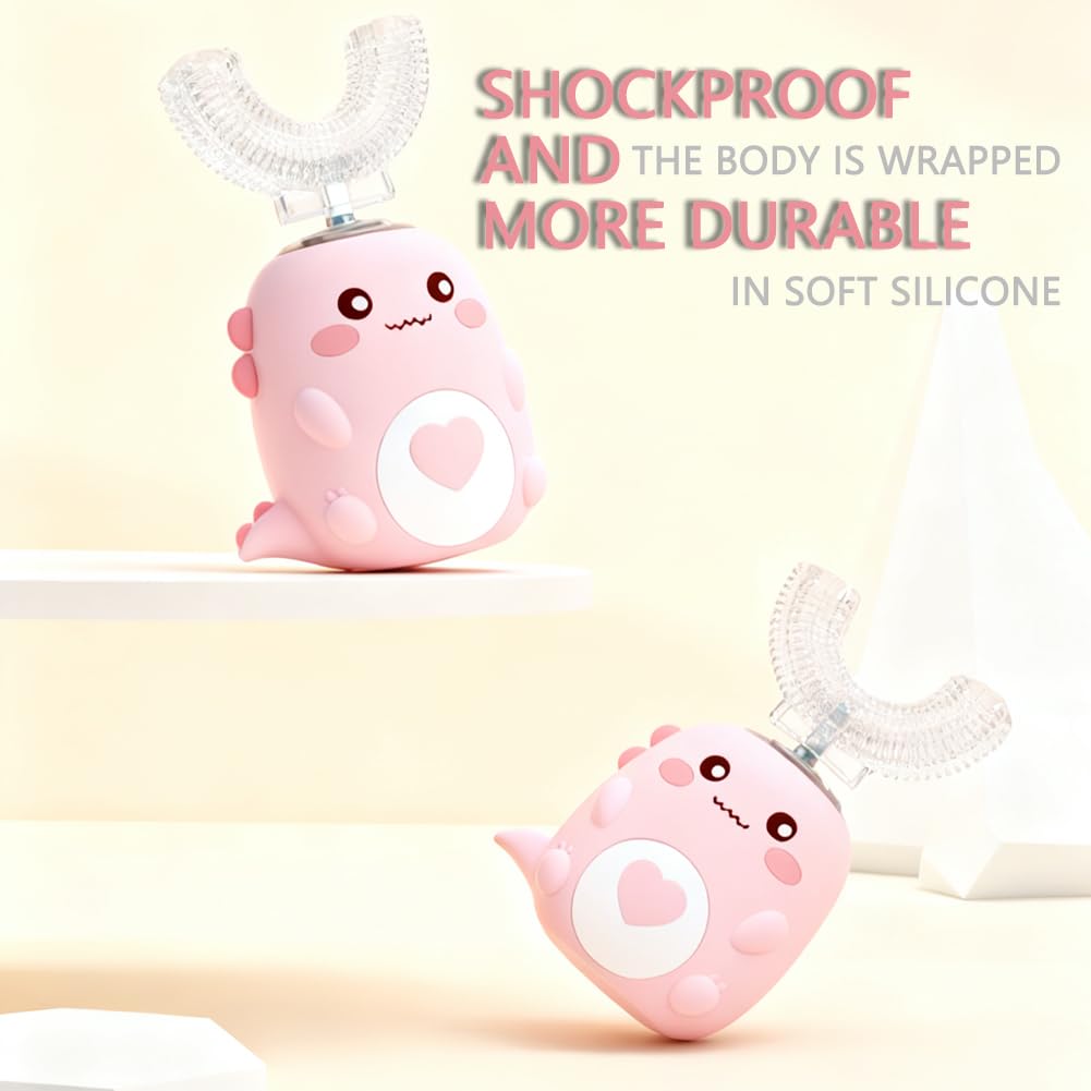 - 360° U-Shaped Full-Mouth Cleaning – The Soft U-Shaped Silicone Brush Gently Fits Around Teeth from All Sides, Helping Clean Top, Bottom, Front and Back Surfaces in About 60 Seconds. Made for Little Mouths to Help Reach All Areas While Making Brushing Easier for Kids to Learn