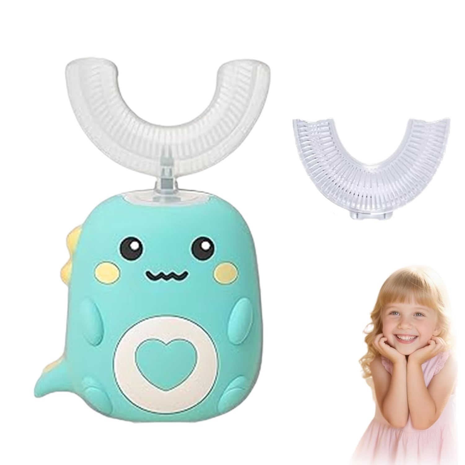 - 360° U-Shaped Full-Mouth Cleaning – The Soft U-Shaped Silicone Brush Gently Fits Around Teeth from All Sides, Helping Clean Top, Bottom, Front and Back Surfaces in About 60 Seconds. Made for Little Mouths to Help Reach All Areas While Making Brushing Easier for Kids to Learn