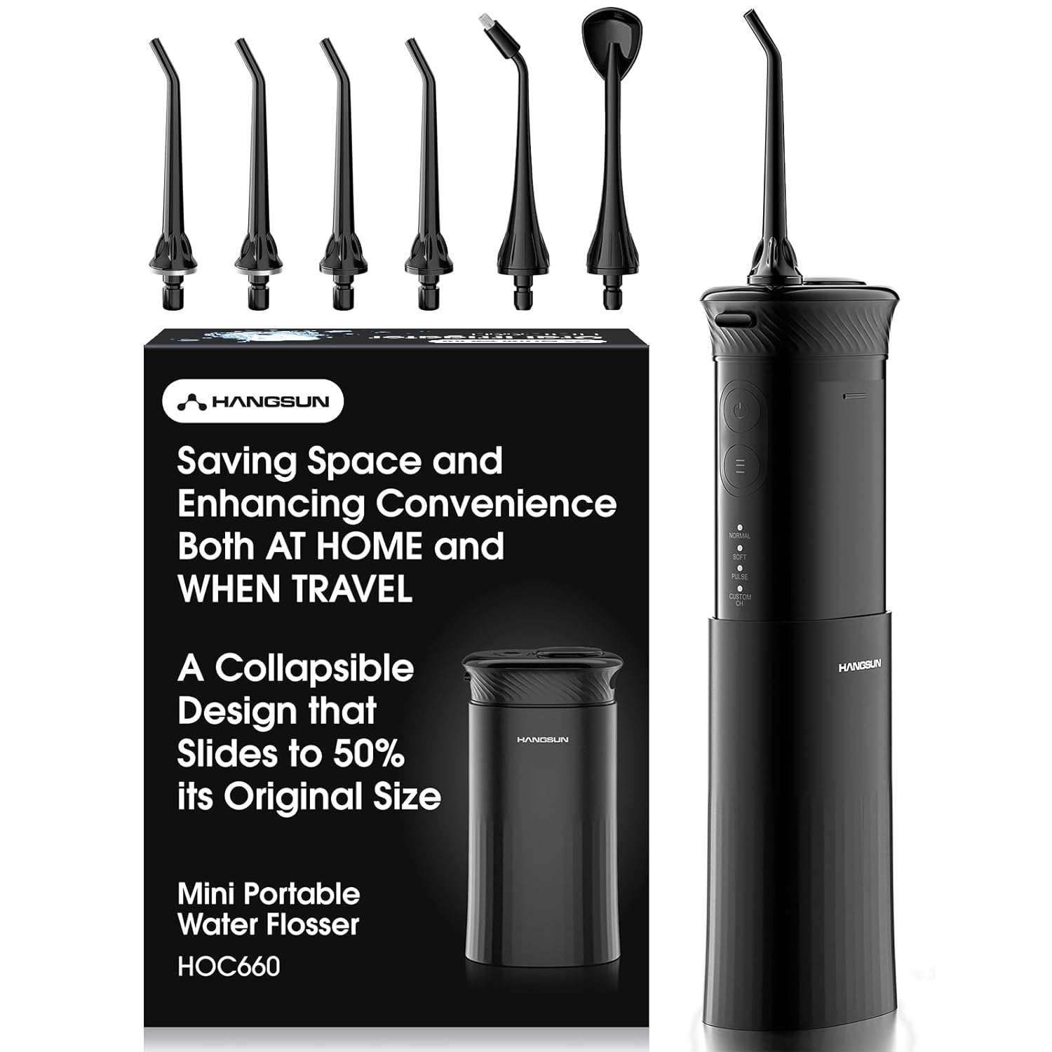 - Collapsible Design for Travel & Home Use: This rechargeable travel water flosser features a smart collapsible design to store nozzles and fit into a storage compartment for storage at home and in bags and luggage for use while travelling. Its compact and foldable design makes it the perfect travel essentials, ensuring you can maintain your oral health wherever life takes you.
