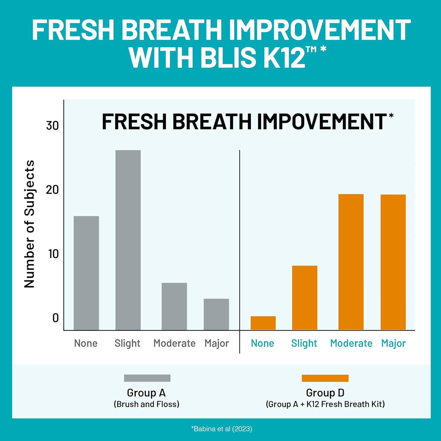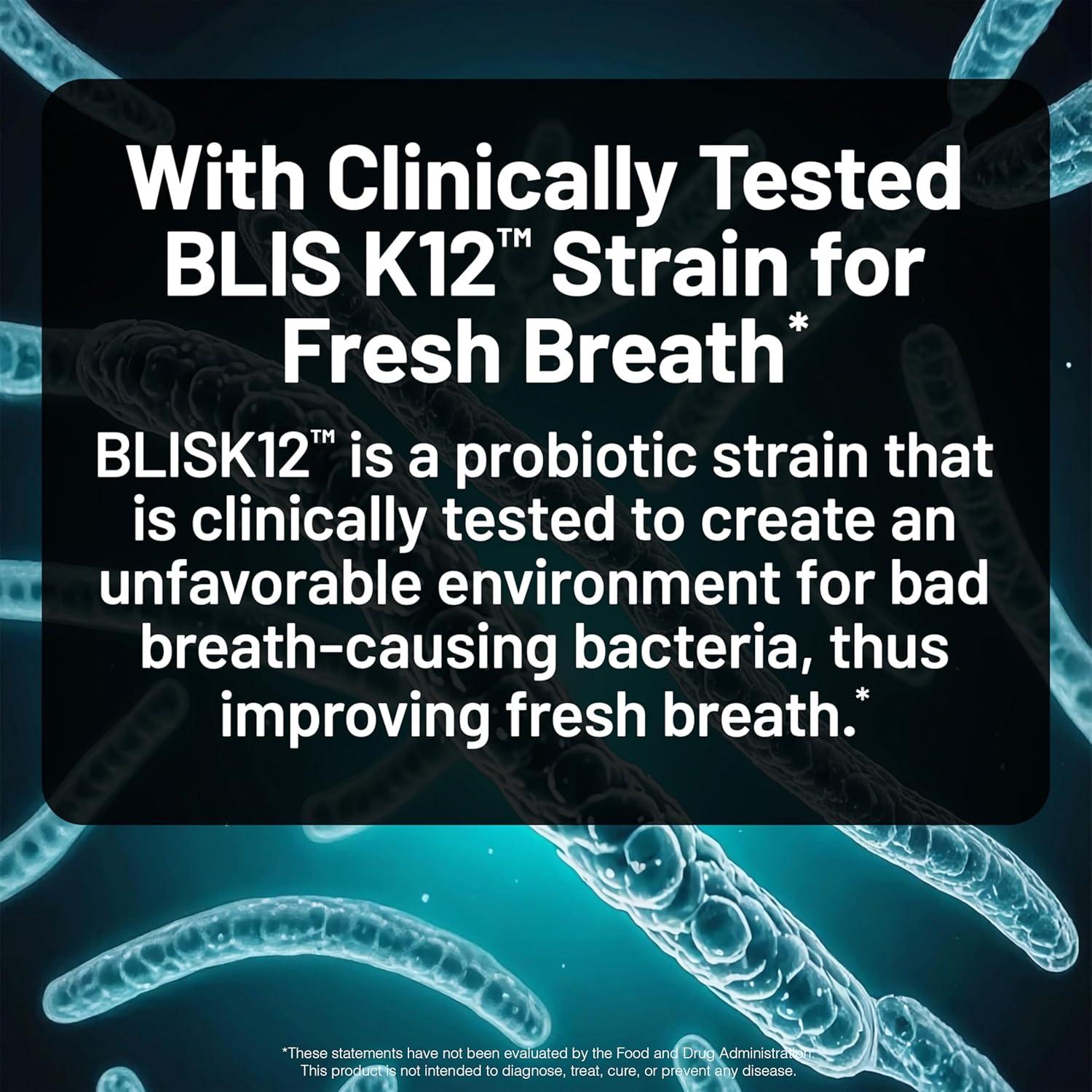 - CLINICALLY STUDIED BLIS K12 FOR FRESH BREATH: This oral probiotic has 12 strains of beneficial probiotics, including BLISK12, that is clinically studied to improve fresh breath by creating an unfavorable environment for bad breath-causing bacteria.*