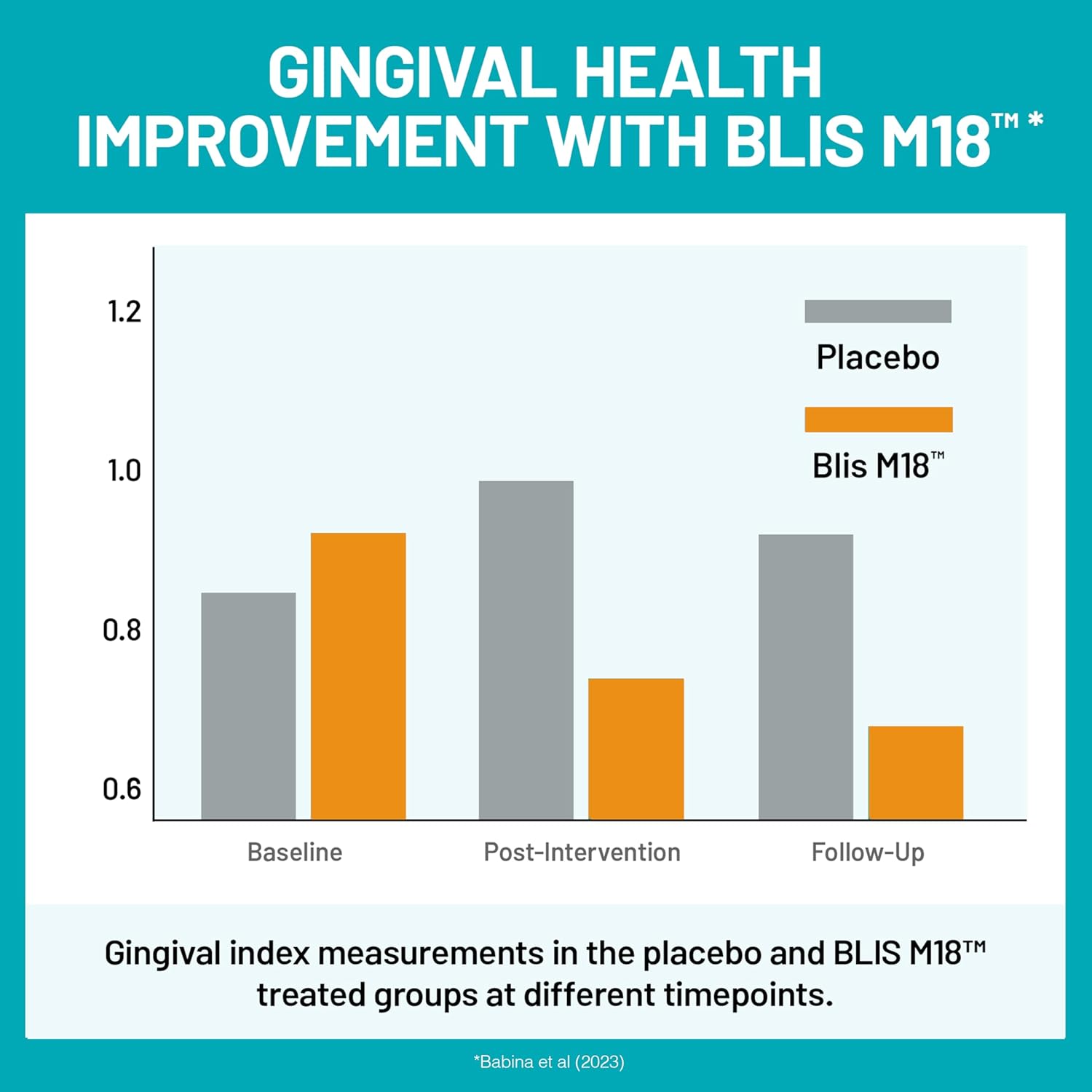 - CLINICALLY STUDIED BLIS M18 FOR GUM HEALTH: This oral health probiotic contains BLIS M18, a probiotic strain that is clinically studied to improve gingival health and oral hygiene levels.*