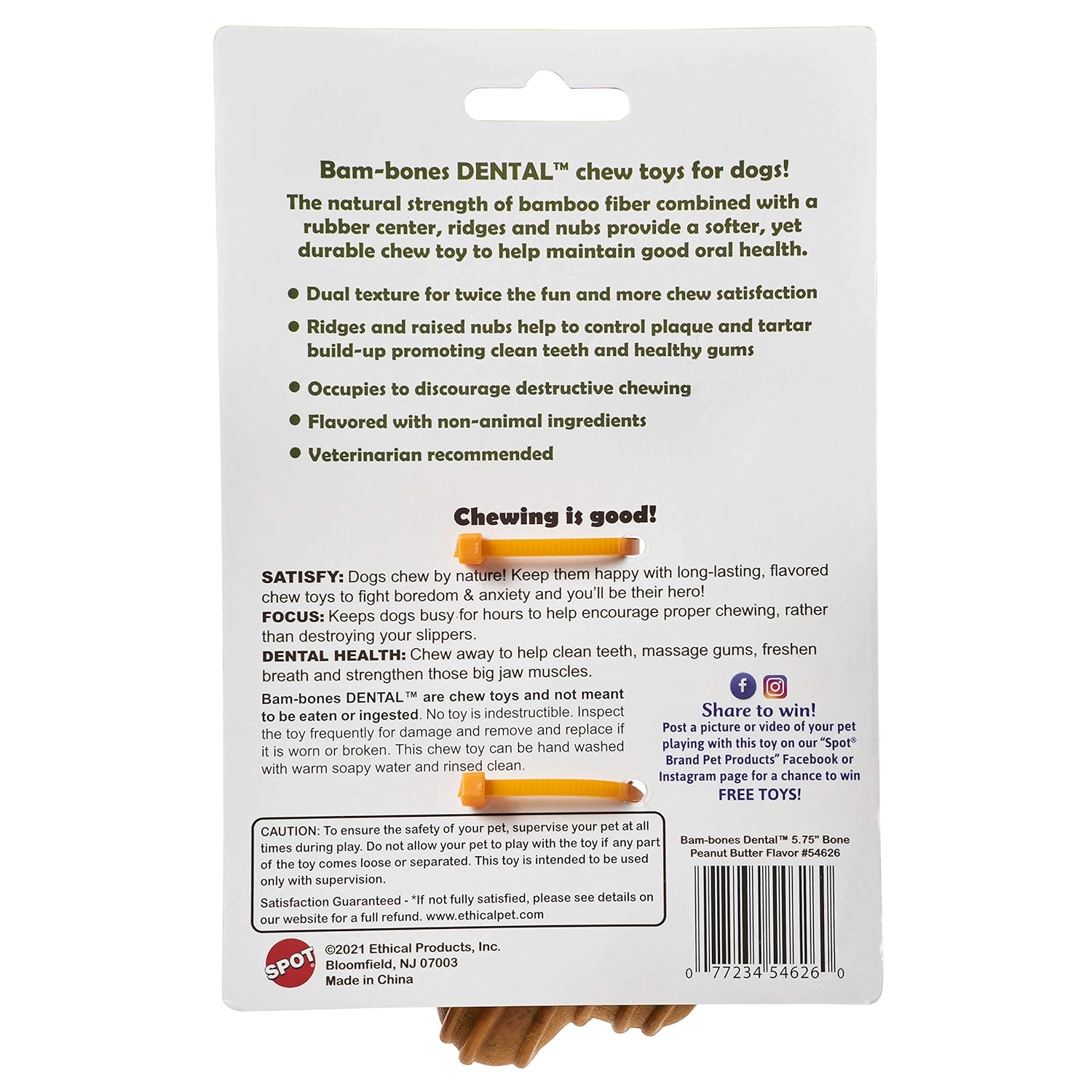 Specification: SPOT Bam-Bones Dental Bone – Made with Bamboo Fiber and a Massaging Rubber Center, Durable Oral Care Dog Chew for Light Chewers & Teething Puppies Under 25lbs, 6in Allergen Free… by SPOT