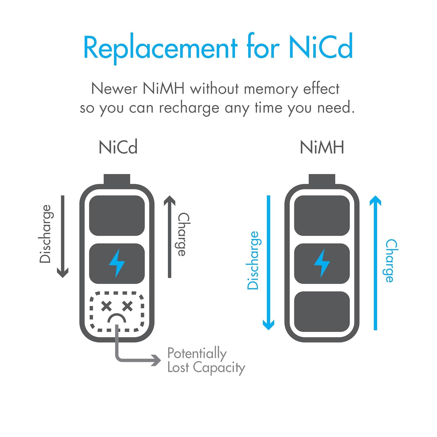 - The NiMH battery pack has no memory effect which helps retain its maximum energy capacity every time