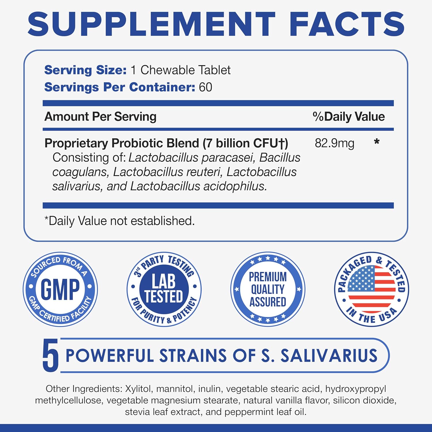- Enhanced Formula with 2X More Probiotics: Tuthi oral probiotic chewables contain 2X more probiotics for bad breath than many other brands. The mouth probiotics work alongside the tongue scraper to support oral cleanliness and overall dental probiotics benefits.