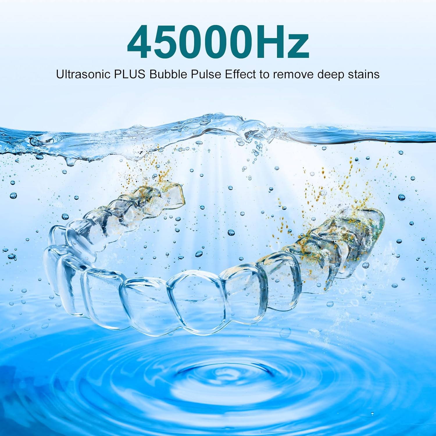 Gentler than harsh scrubbing: Instead of manually brushing which can scratch or damage plastic/delicate dental appliances, ultrasonic cleaning with a mild solution often reduces risk of micro-abrasions. If it works as advertised, the 45 kHz frequency is in a range used by many similar units, balancing power vs gentleness.