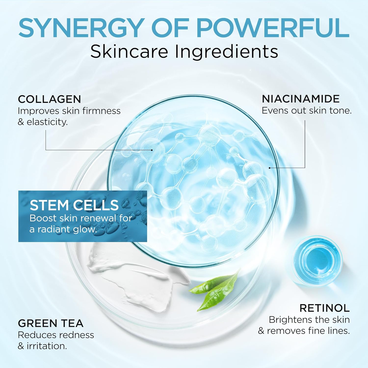 - Advanced Formula – Blend of collagen, botanical stem cells, retinol, and niacinamide helps support youthful-looking skin and reduce the appearance of aging signs.
