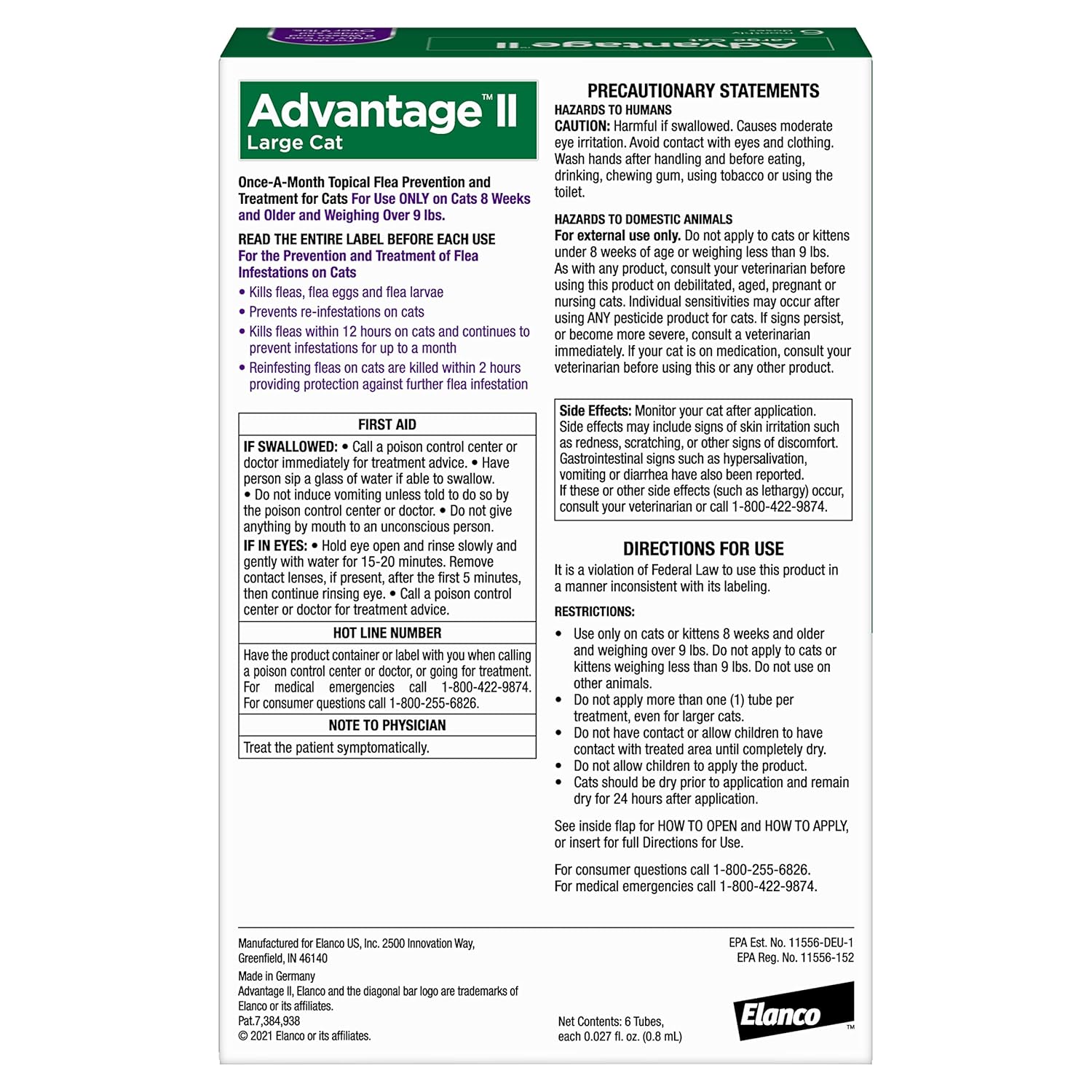 Specification: Advantage II Large Cat Vet-Recommended Flea Treatment & Prevention | Cats Over 9 lbs. | 6-Month Supply by Advantage