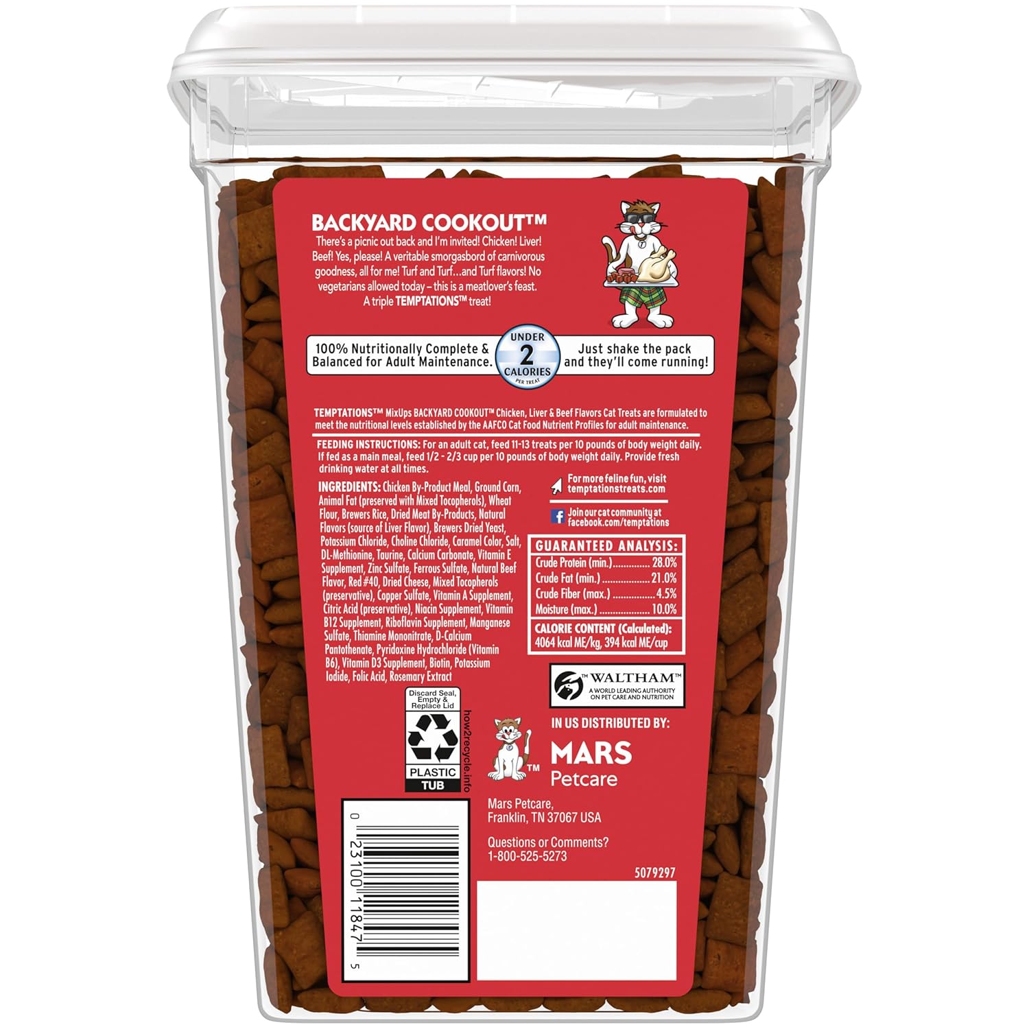 Specification: Temptations MixUps Backyard Cookout Flavor Crunchy and Soft Cat Treats, 30 oz. Tub by Temptations