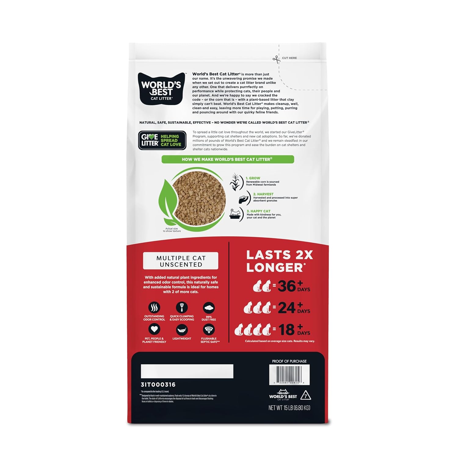 Specification: WORLD’S BEST CAT LITTER Multiple Cat Unscented, 15-Pounds – Natural Ingredients, Quick Clumping, Flushable, 99% Dust Free & Made in USA – Long-Lasting Odor Control & Easy Scooping by World’s Best Cat Litter