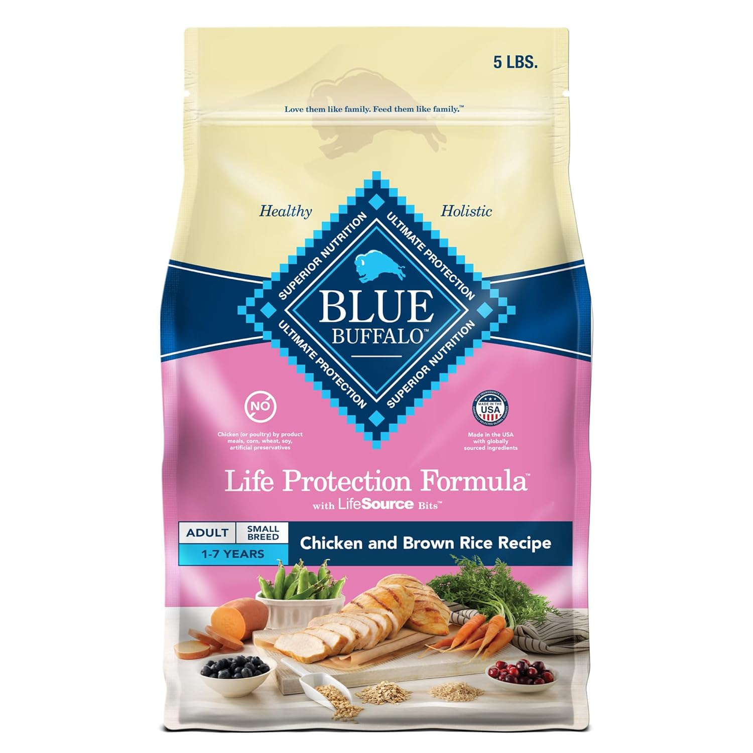- Contains one (1) 5 lb. Bag of BLUE Life Protection Formula Small Breed Adult Dry Dog Food, Chicken and Brown Rice