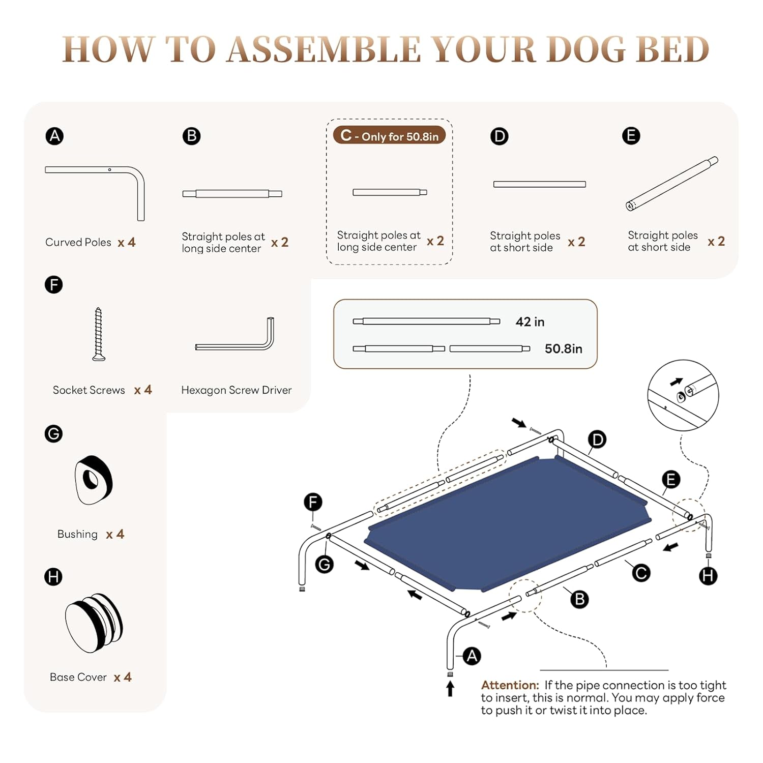 - 【Sturdy and Stable】These dog cots beds for large dogs are made of heavy-duty, rust-proof steel tubes and non-slip rubber feet—supports energetic dogs without wobbling, even during playtime