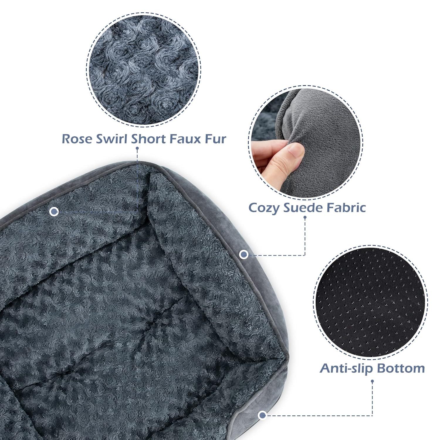 - 🐶Comfort & Security Edge: Raised four walls and pillow-like rectangular dog bed provide good support and cushion for the dog’s head and neck, the super-soft filling offers joint and muscle pain relief. and allowing your puppy to have a comfortable and restful sleep. Low leading-edge design is easy access for small and old dogs.