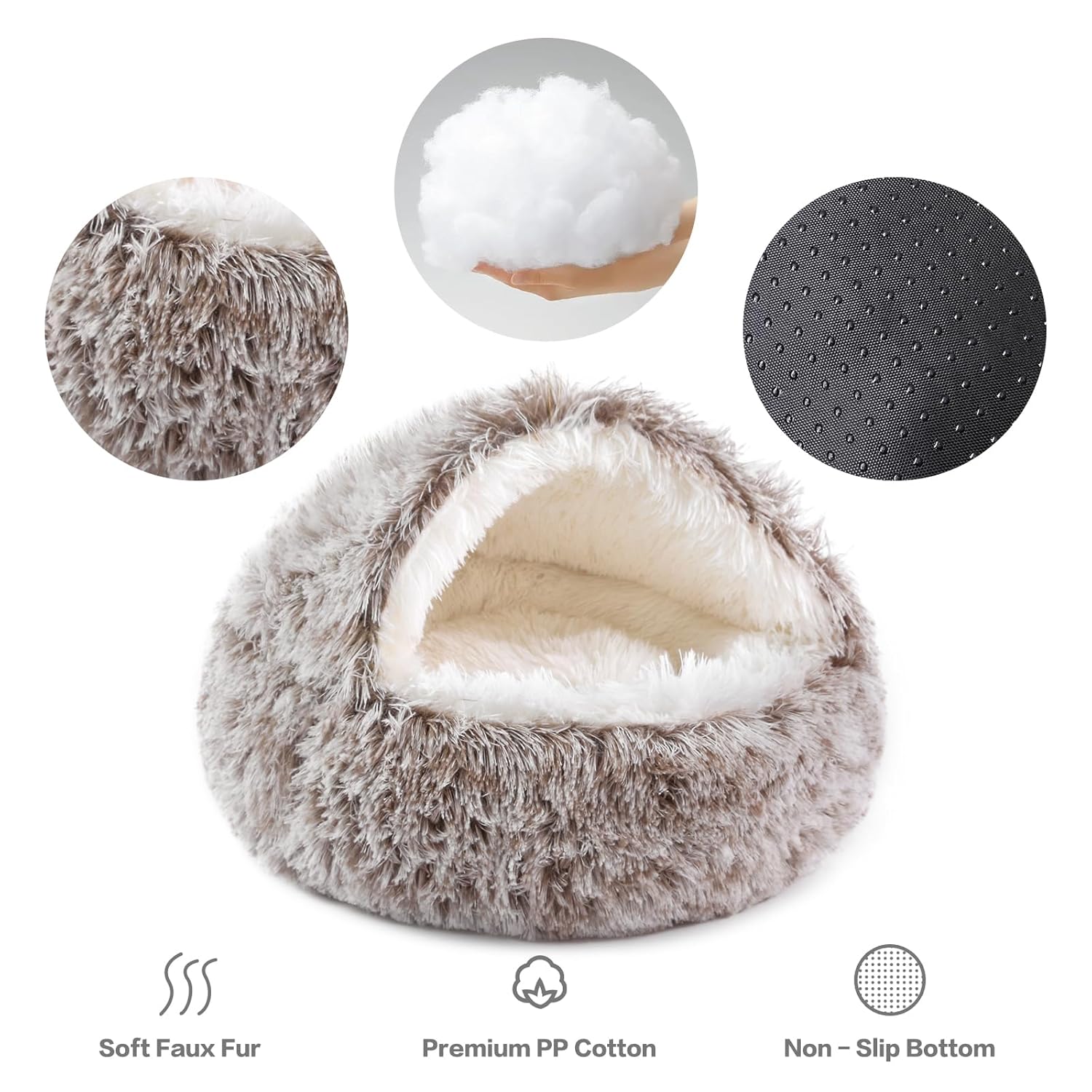 About NOYAL Round Hooded Donut Dog Bed for Small & Medium Pets – Plush Fluffy Anti-Anxiety Cat Cave Bed with Cover