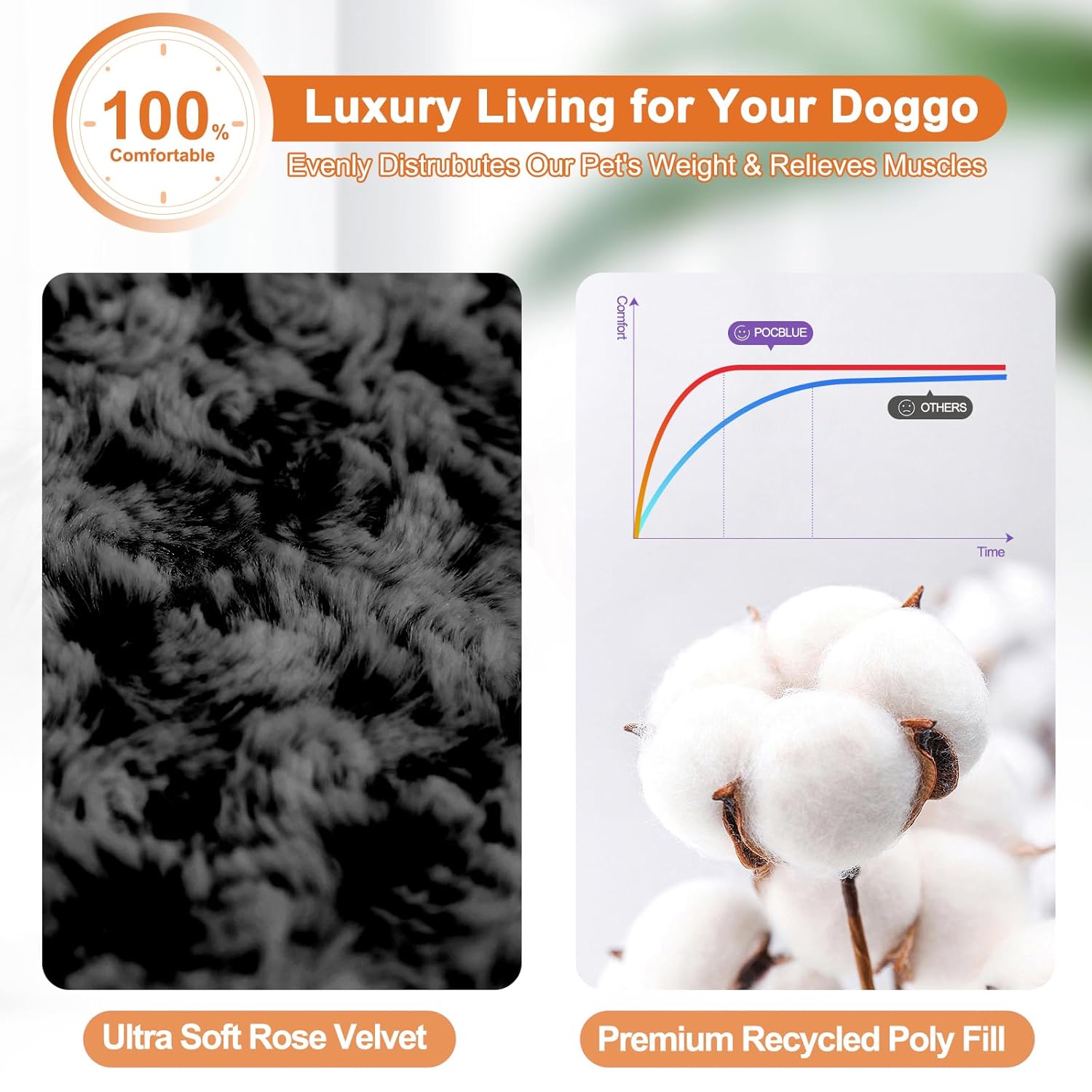 - Premium Comfort: Our dog bed is filled with high-quality down-alternative fiber filling, offering optimal support and cushion for your pet’s joints and muscles. Give your beloved furry friend the gift of unparalleled comfort whether traveling or taking a nap