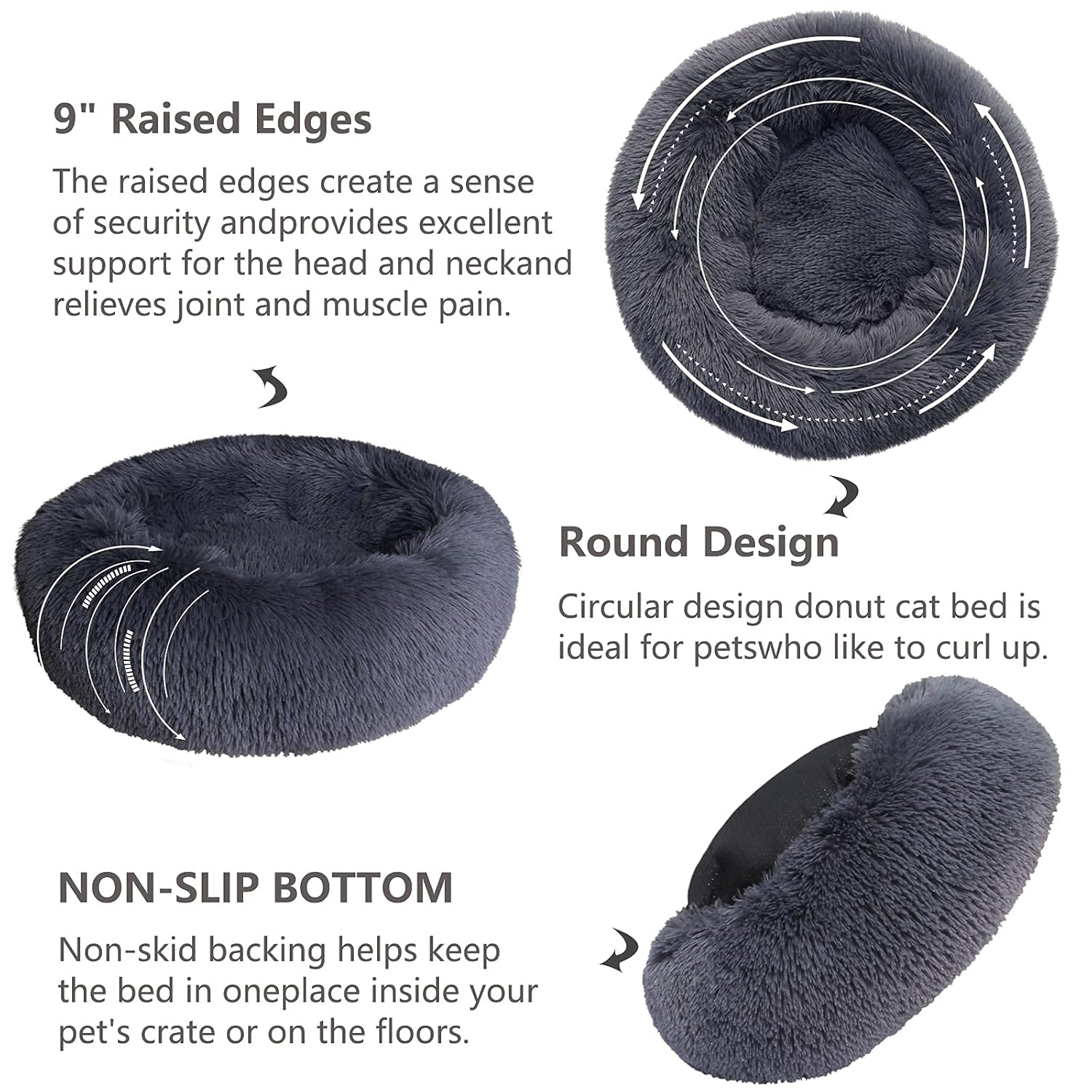 About Small Calming Dogs Bed for Small Dogs Anti-Anxiety Machine Washable Fluffy Luxury Anti-Slip Waterproof Mute Base Warming Cozy Soft Pet Puppy Round Bed