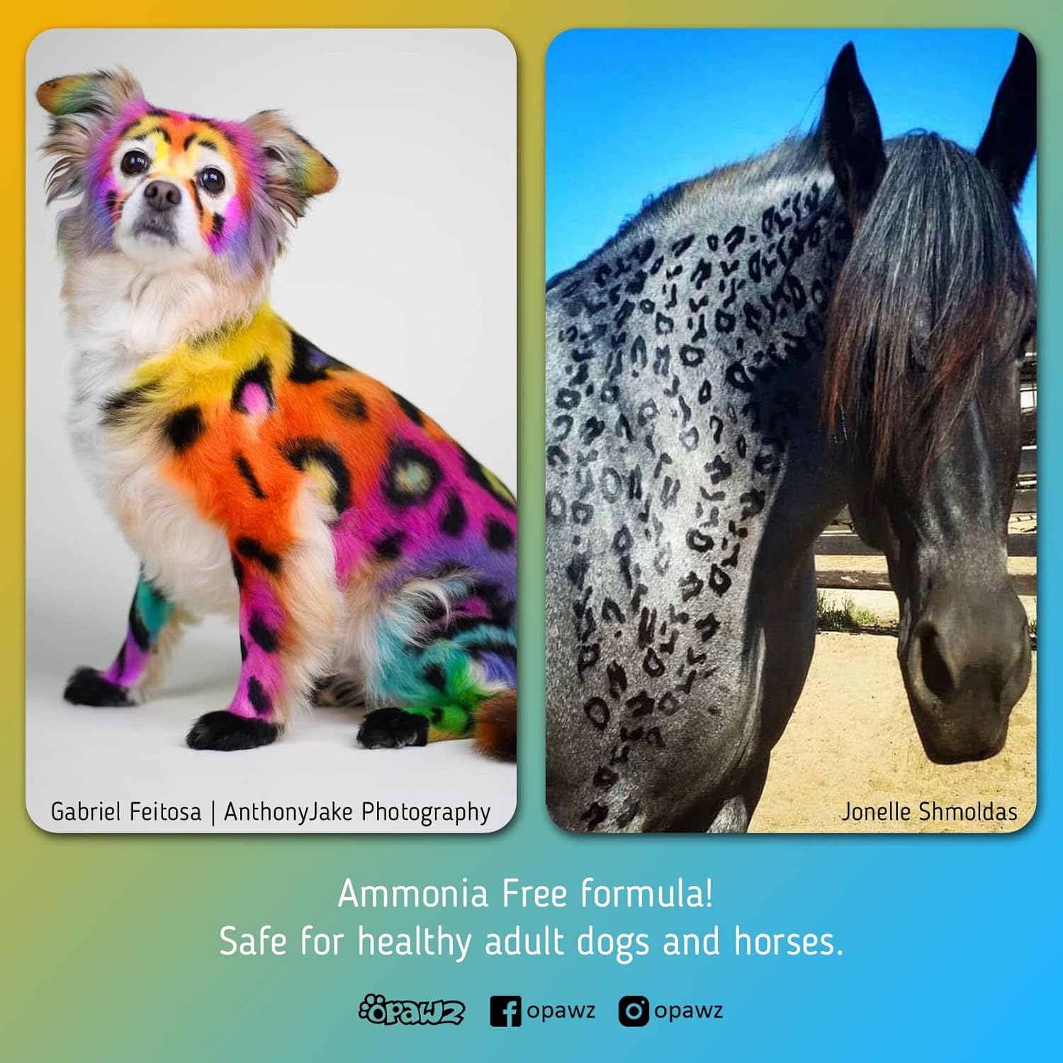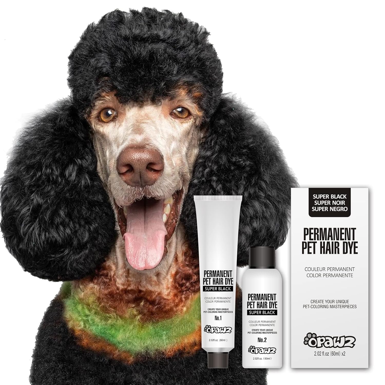 - Wanna a true black color? OPAWZ Super Black dog hair dye rocks it! AMMONIA-FREE! OPAWZ pet hair dye is safe for pets with Ammonia-free formula. PROFESSIONAL USE ONLY. Long-lasting permanent color specially formulated for dog and horse. Provides bright, fashionable and unique color results.