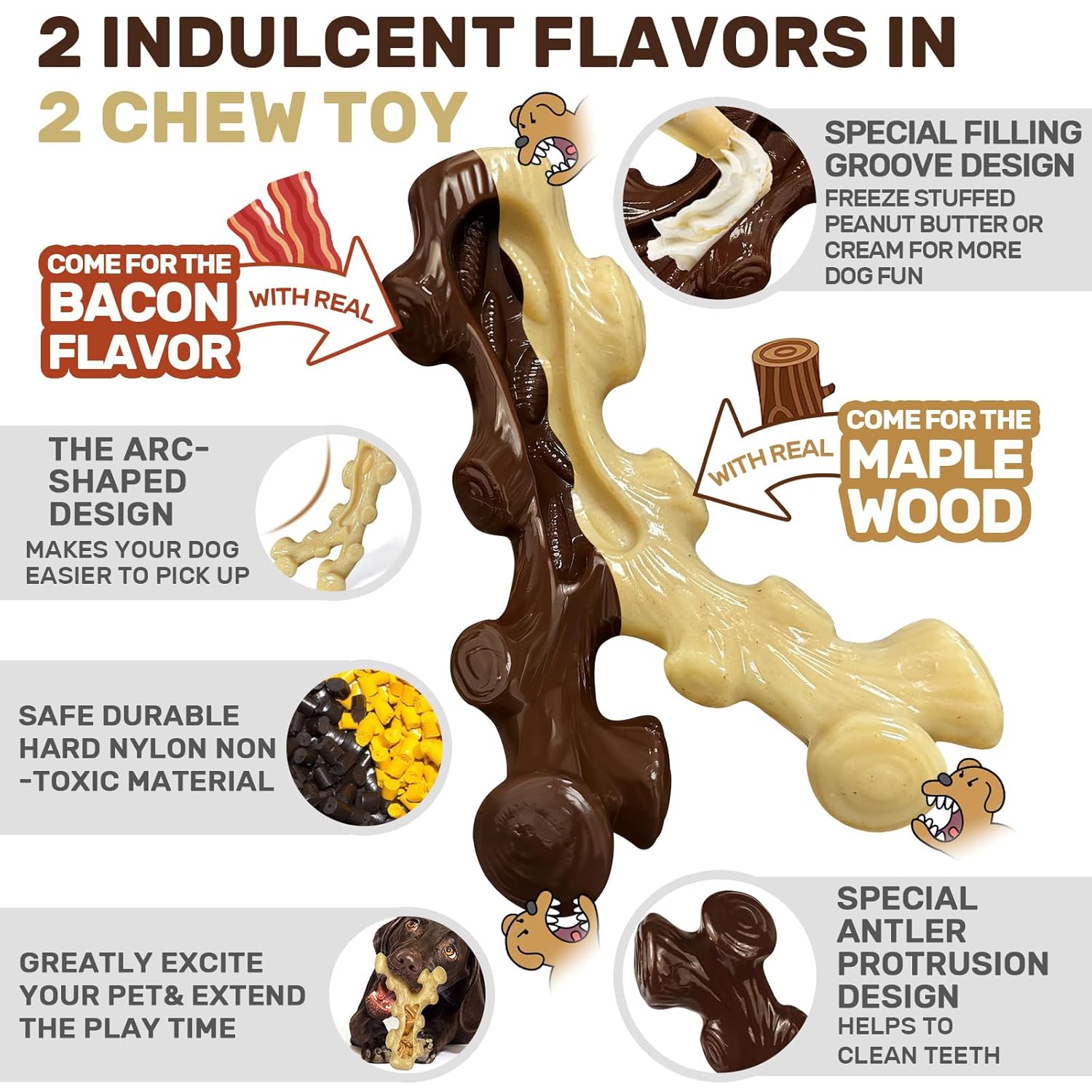 - Truly tempting taste-this dog toy has a unique smoking process,infused with 100% authentic taste;brown toys exude the aroma of crispy bacon,while beige toys have an elegant woody scent. Trust us,these enticing scents will tempt your dog to chew.Charming and chewy,your furry companion will never be able to resist.Not only does it reduce anxiety and prevent destructive chewing,but it also teaches your precious dog healthy chewing habits-perfect for training,teething,weight control and much more